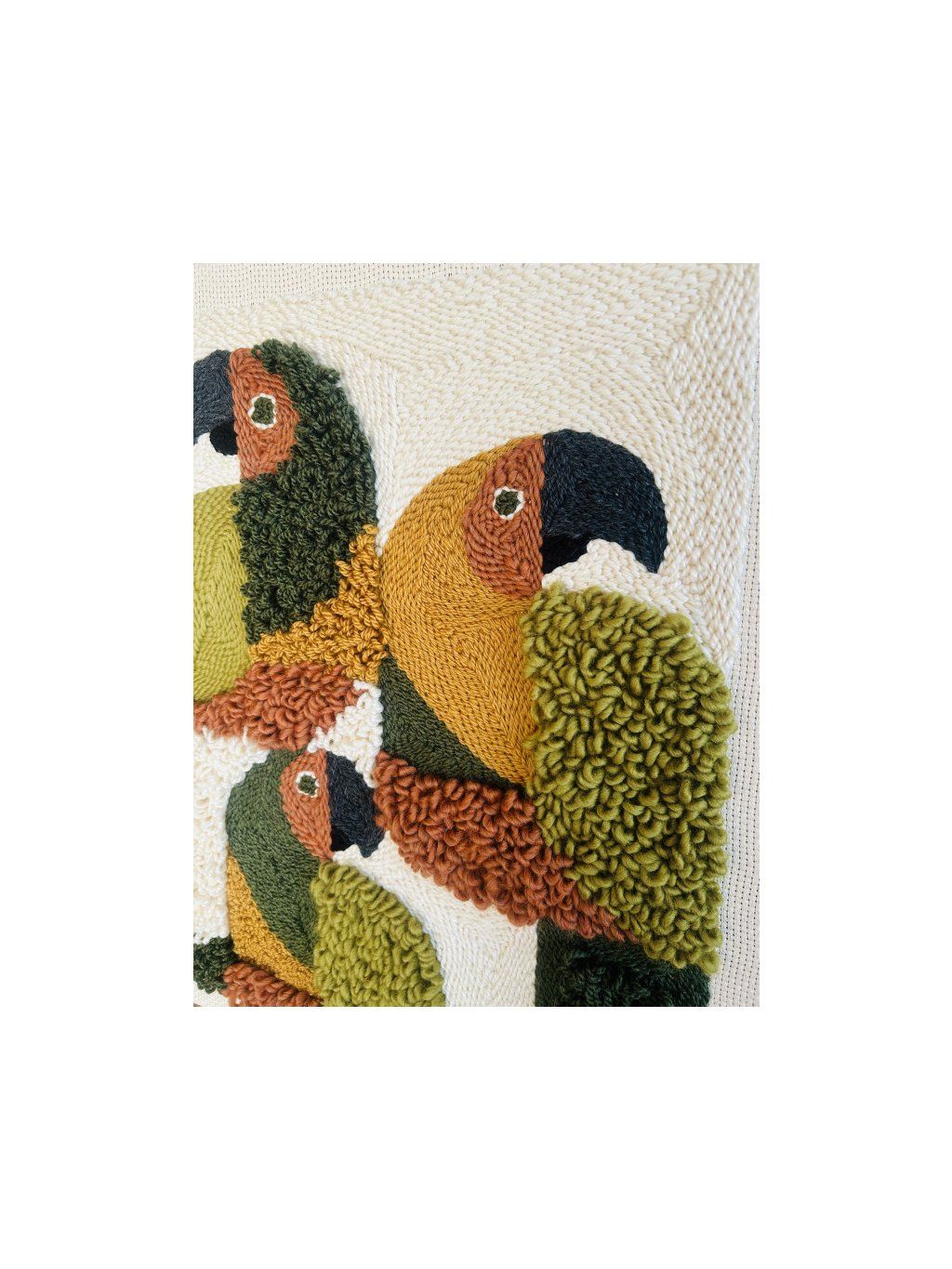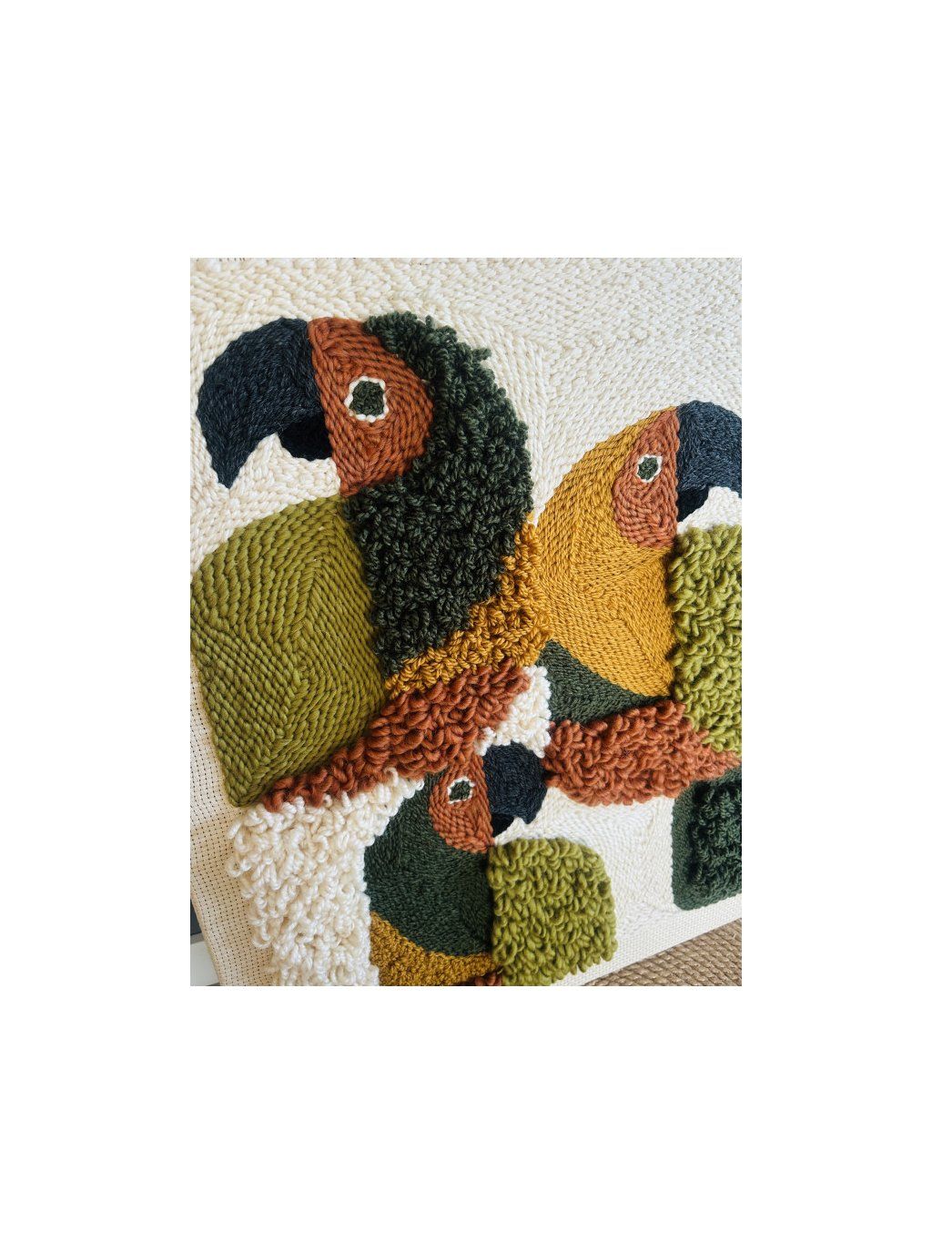 Unikátní, ručně tkaný obraz s výraznou trojrozměrnou texturou. Různé směry tkaní vytvářejí jemný 3D efekt, díky kterému dílo krásně reaguje na světlo a přitahuje pozornost zblízka. Přirozená barevná paleta zelené, hořčicové, cihlově hnědé a ecru činí z obrazu perfektní volbu pro boho, organické a moderní interiéry. Tato dekorace dodává interiéru teplo, hloubku a umělecký charakter. • Rozměry: 50 × 60 cm • Technika: ručně tkaná • Textura: výrazný 3D efekt • Unikátní kus