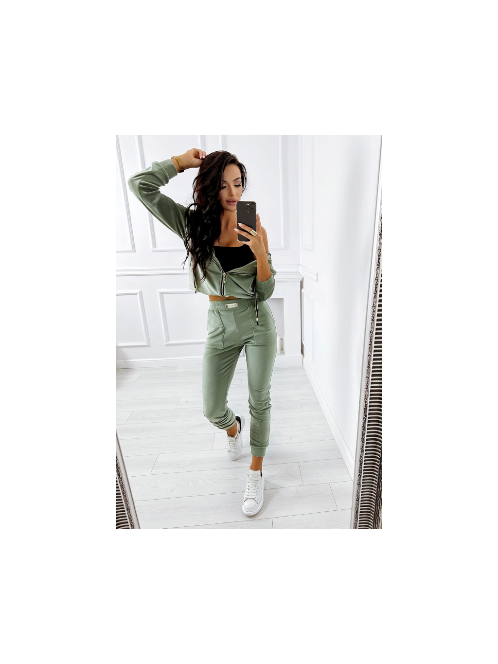 Caramel Cozy sametová souprava olivová