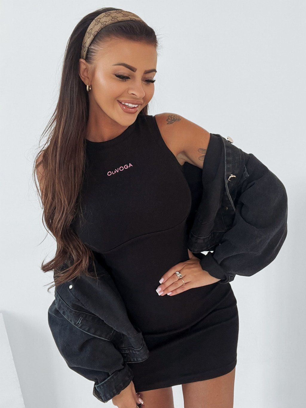 Přiléhavé, sexy šaty s módním prošíváním, které zdůrazňuje výstřih, a decentním logem značky na přední straně. Zkombinujte je s jehlovými sandály nebo teniskami a cíťte se stylově s OLV!