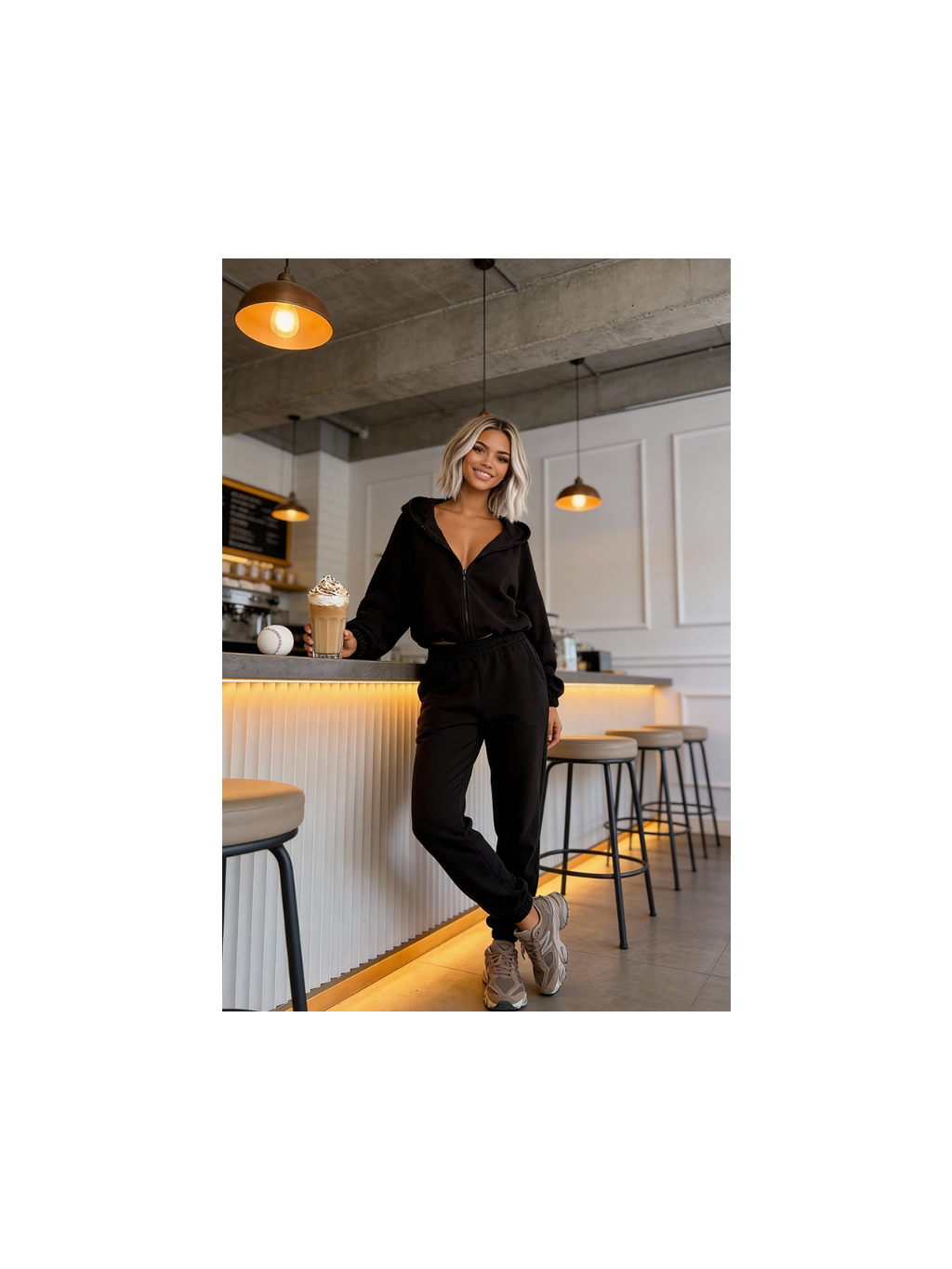 Tato sada je dokonalou kombinací pohodlí a stylu. Je měkká a pohodlná na nošení, ale zároveň praktická a moderní díky mikině na zip. Můžete ji nosit jako celek nebo kombinovat jednotlivé kusy s dalšími a vytvářet tak různé pohodlné městské outfity.