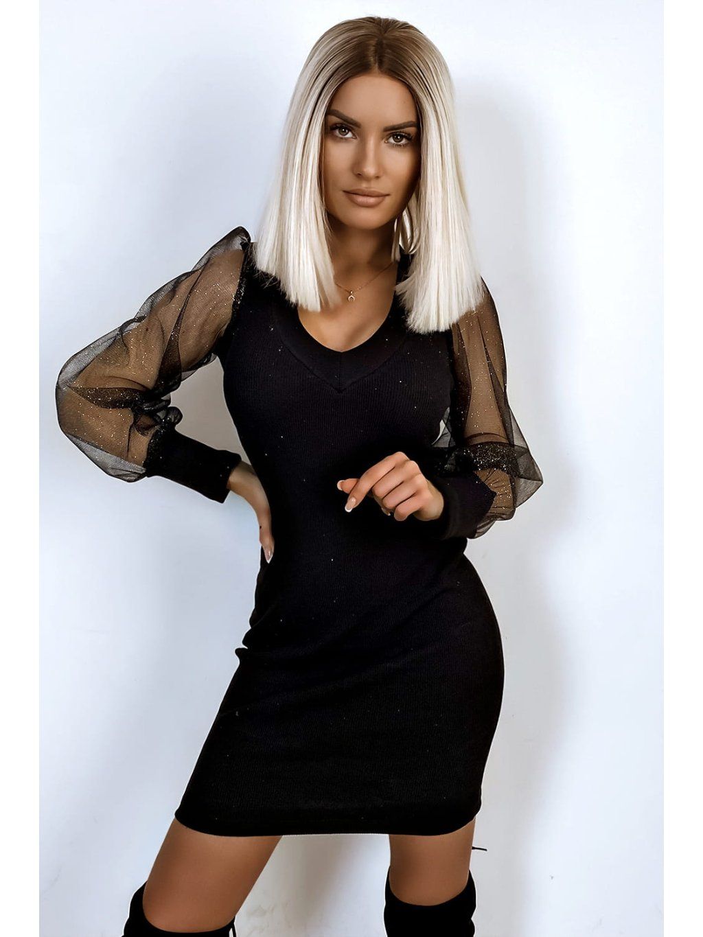 ČERNÉ TŘPYTIVÉ NAFOUKANÉ ŠATY