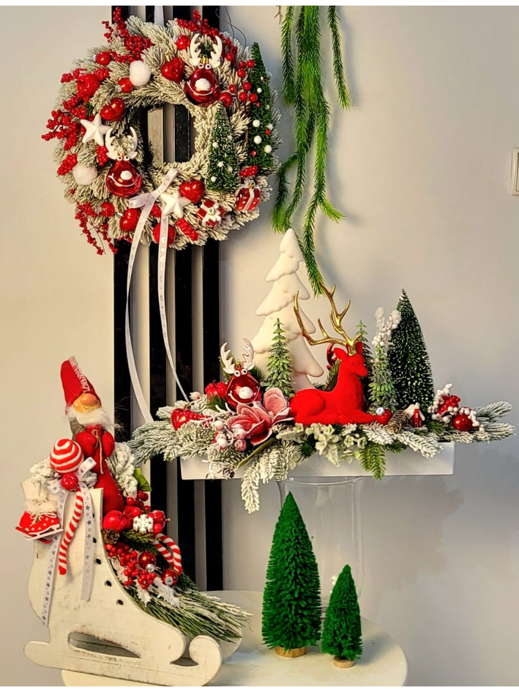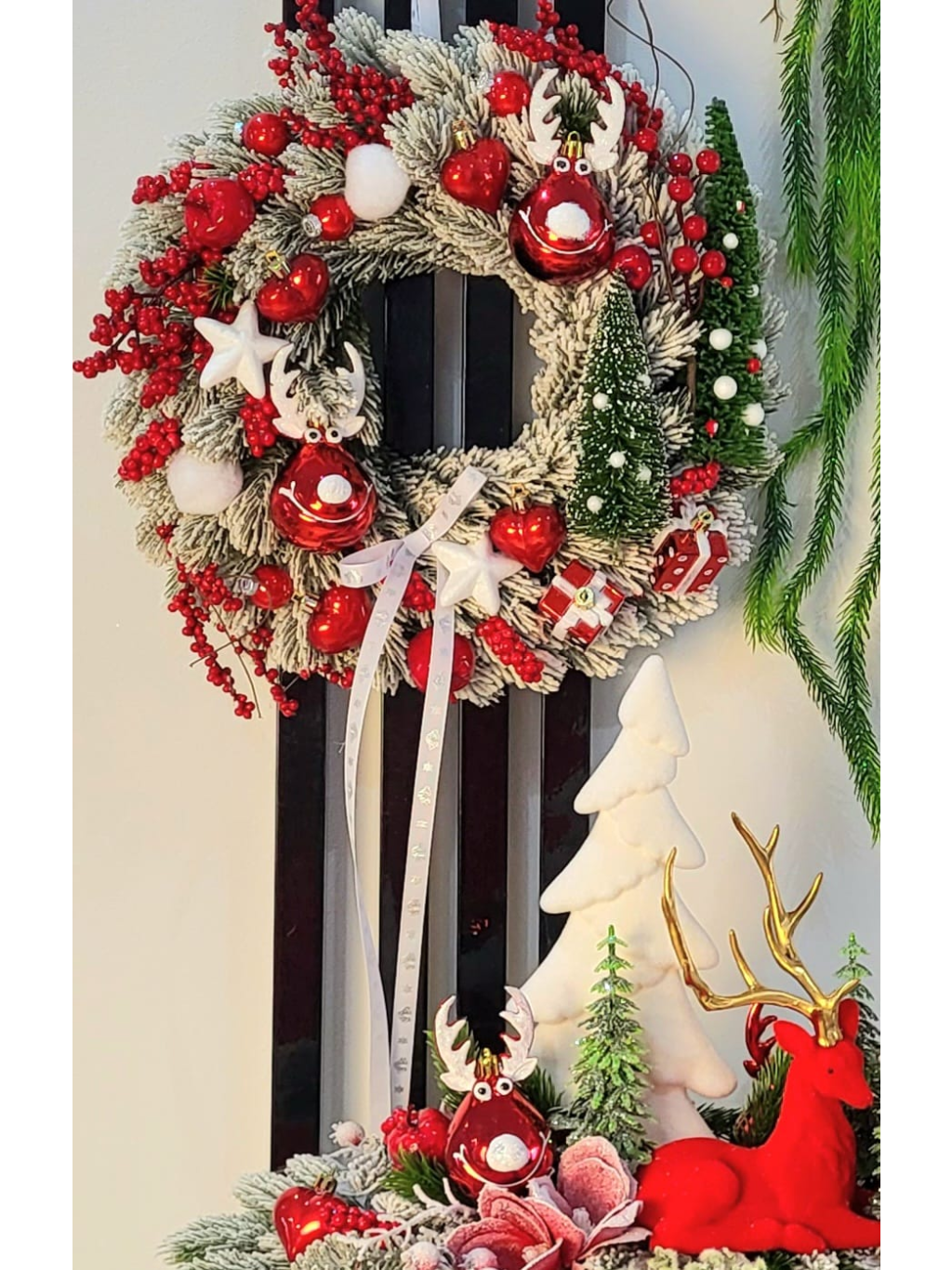 - Krásný zimní a vánoční věnec plný dekorací