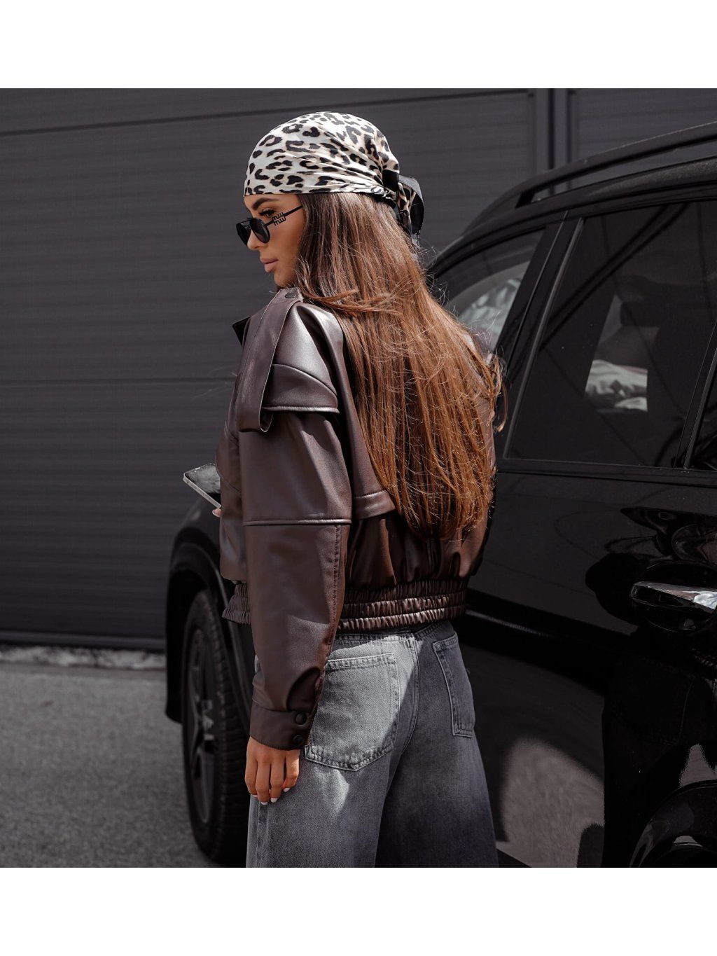 Zapíná se na druky a má široký stojáček. Má spuštěné rukávy s nárameníkem a manžetami. Má elastický pas. Velké nakládané kapsy vpředu dodávají
