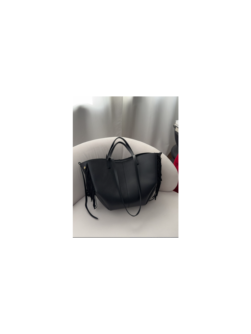 Dámská kožená kabelka Poli maxi s třásněmi, černá