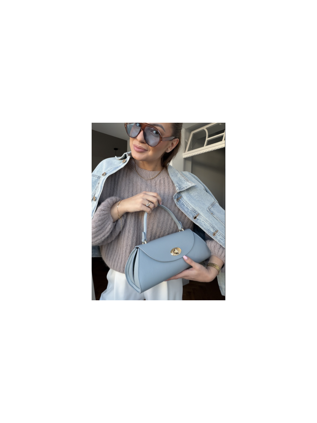 Tuto dámskou kabelku doplňte s krátkým svetrem a světlými džínami.