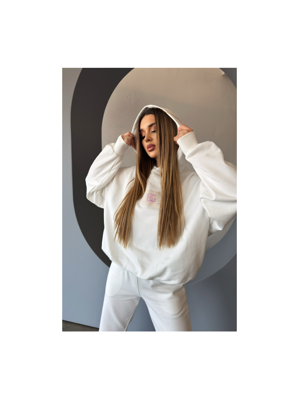 Dámská mikina BG BEBE vyrobená z vysoce kvalitní bavlny s dodatečnou bavlněnou podšívkou pro bublinový efekt. Mikina s kapucí, žebrovanými manžetami a růžovou nášivkou s logem BG uprostřed. Mírně oversized střih.