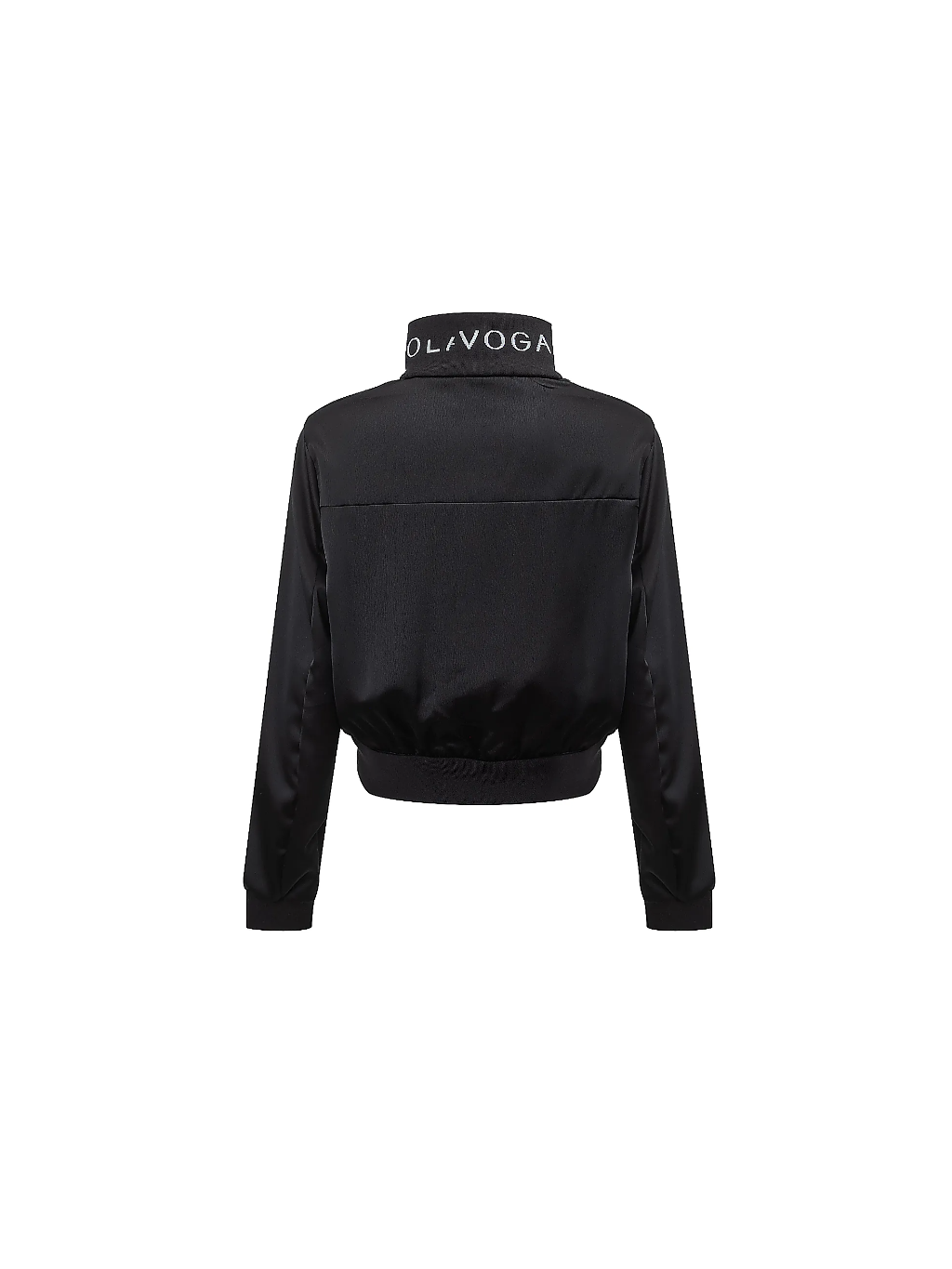 Zkrácená mikina má žebrovaný límec s detailem loga a zapínání na zip s detailem loga. Přední kapsy zdobí zlaté detaily OLV a lem mikiny je zakončen páskem se zlatými zarážkami pro možnost nastavení. Kalhoty s vysokým elastickým pasem s logem OLAVOGA a zlatými zarážkami v pase a šňůrkami na nohavicích zajišťují pohodlné nošení a dokonalé přizpůsobení.