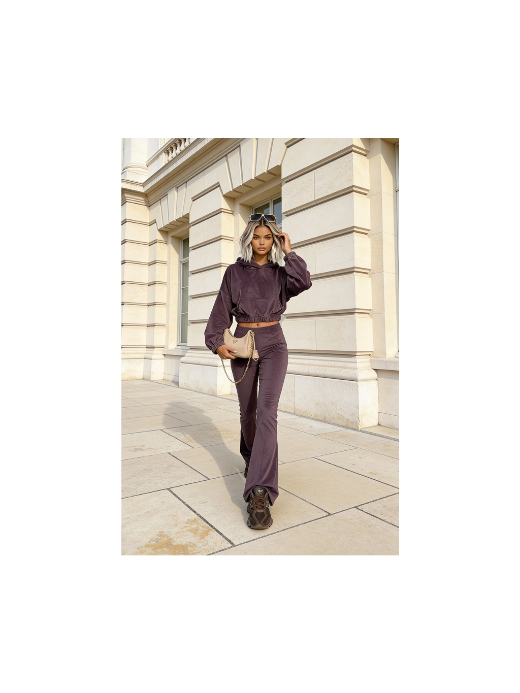 Objevte sadu, která kombinuje každodenní pohodlí s módním designem. Měkká mikina s kapucí a zvonové kalhoty vyrobené z vysoce kvalitního veluru jsou dokonalou kombinací pohodlí a ženského střihu.