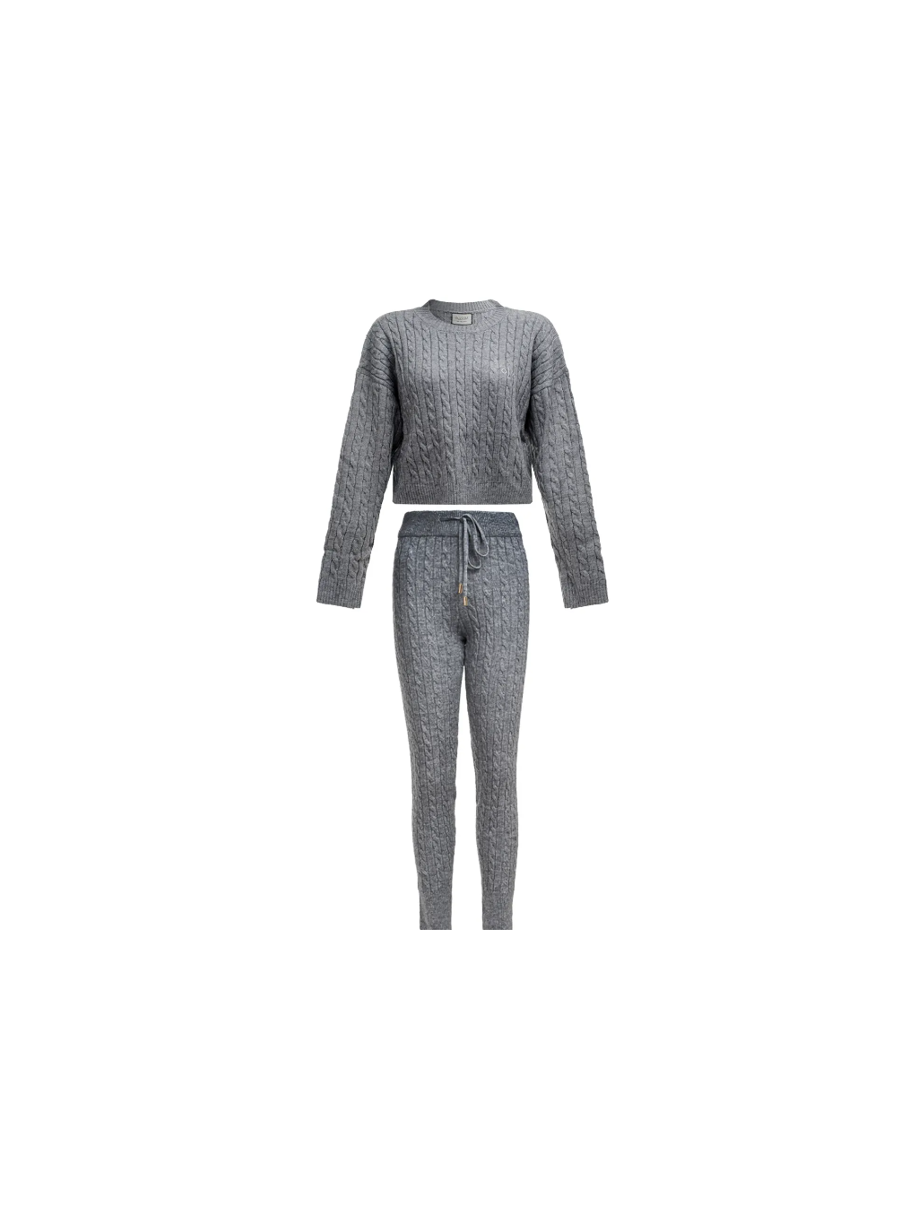 Vrchní díl je stylový crop top v podobě krátkého svetru s výraznou kostkovanou vazbou. Dlouhé rukávy a kulatý výstřih zajišťují všestrannost, zatímco decentní logo OLV na hrudi dodává sofistikovaný nádech. Díky měkkému úpletu je svetr mimořádně příjemný na celodenní nošení. Kalhoty s vysokým pasem krásně tvarují siluetu a elastický pas se stahovací šňůrkou umožňuje přizpůsobení. Žebrované manžety dodávají sportovní nádech, zatímco logo OLV na boku v barvě výrobku je ochrannou známkou značky. Tato souprava je ideální pro ležérní denní styling i v kombinaci s módními doplňky na vycházky s přáteli. Jednotlivé kousky můžete nosit samostatně nebo dohromady - záleží jen na vás, jaký styl si zvolíte!