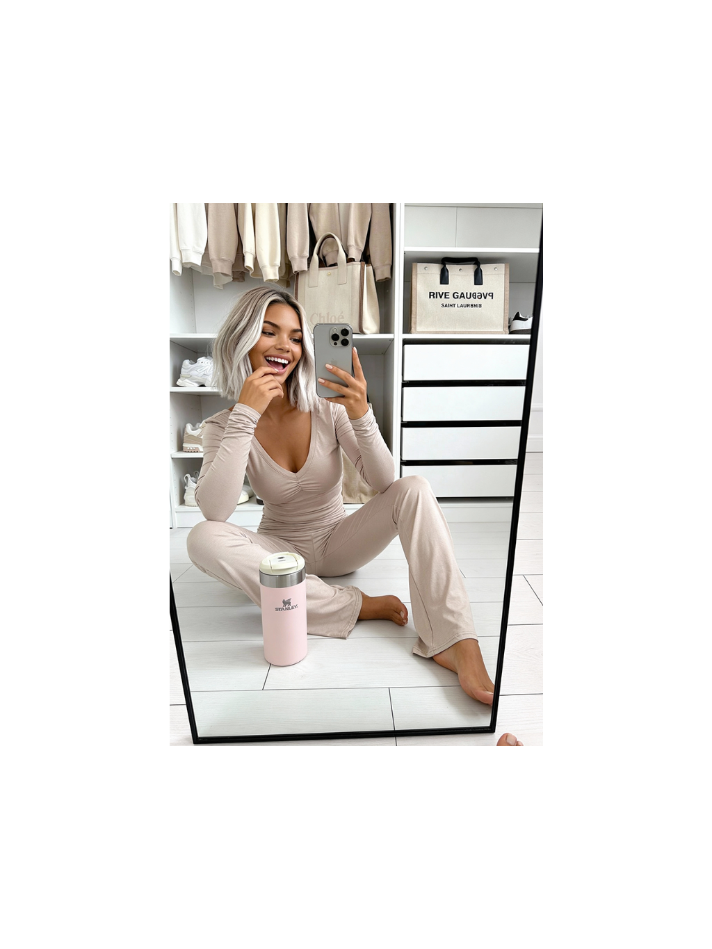 Dámská souprava Lizzy, halenka a kalhoty s volánkem v latte