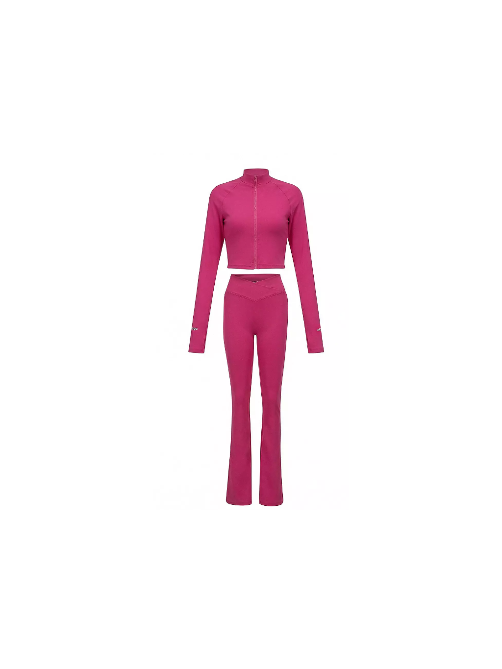 Legíny s vysokým pasem a modelujícím páskem zvýrazňují postavu a opticky zeštíhlují pas. Krátká mikina na zip dodává moderní sportovní nádech. Celý vzhled dotváří decentní logo OLAVOGA.