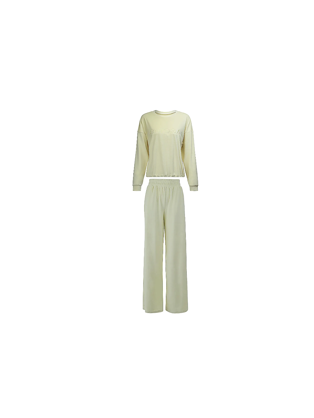 Souprava se skládá z halenky s dlouhými rukávy a kulatým výstřihem a kalhot se širokými nohavicemi a vysokým elastickým pasem. Jemná výšivka OLAVOGA na kalhotách a výšivka OLAVOGA na přední straně mikiny dodávají soupravě značkový nádech a zdůrazňují její moderní charakter.