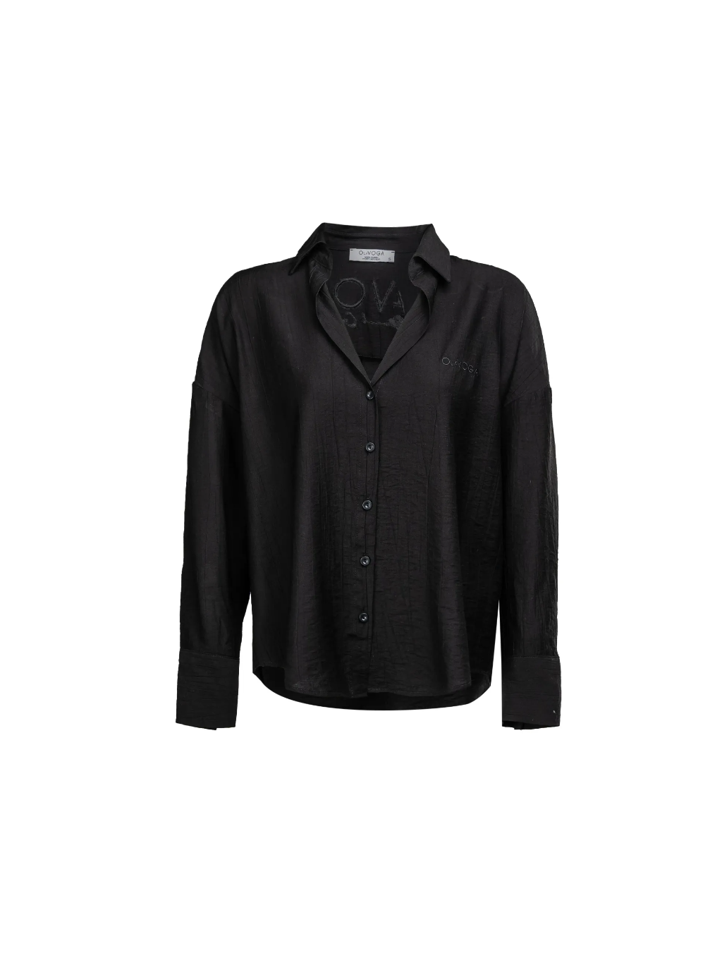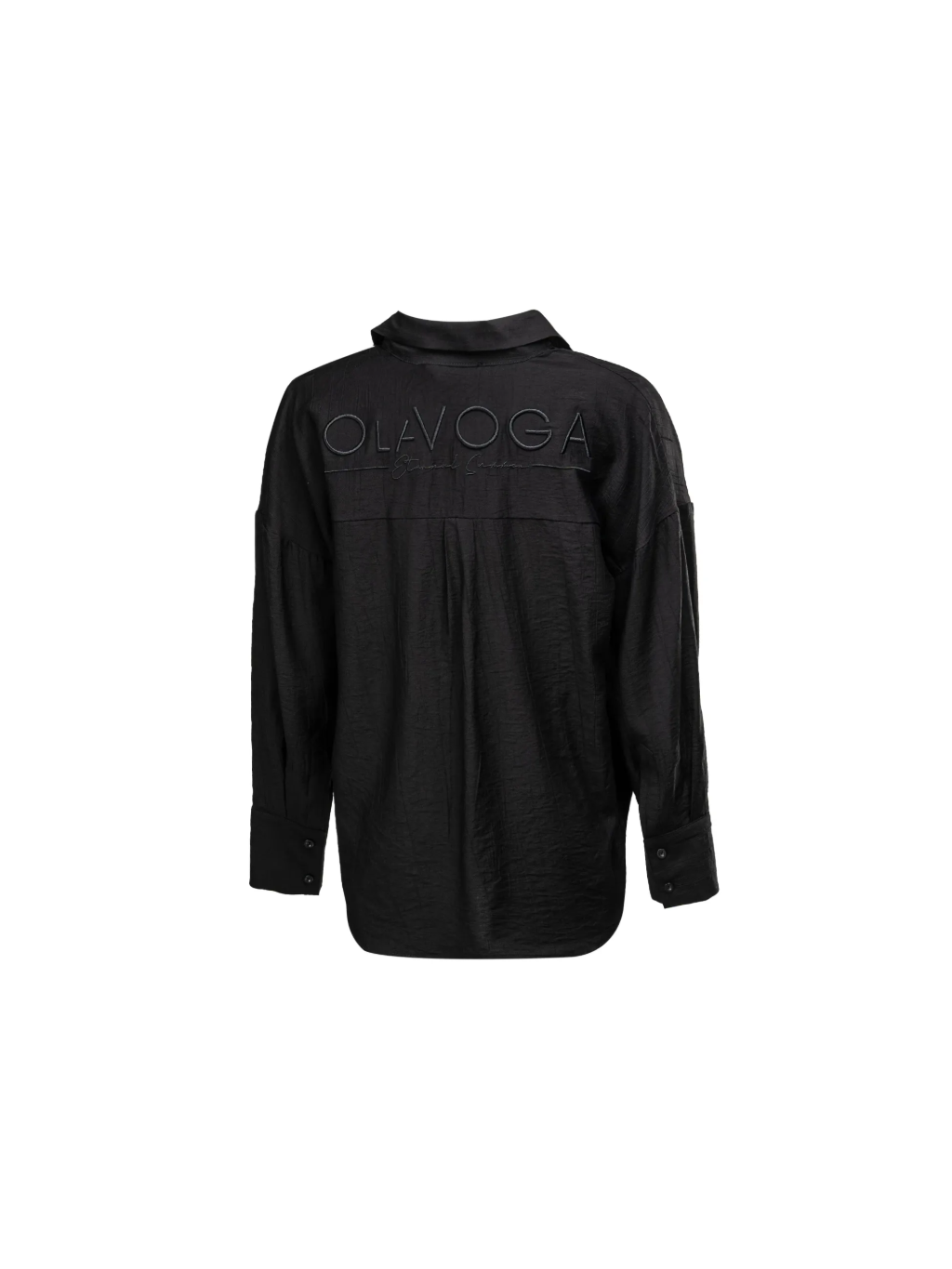 Horní díl je elegantní košile mírně volného střihu, zdobená jemnou výšivkou s logem značky OLAVOGA, která barevně ladí s celou soupravou. Na zadní straně je výrazná 3D výšivka s logem značky, která dodává košili výrazný nádech. Spodní díl tvoří široké kalhoty s rozšířenými nohavicemi pro ležérní a stylový vzhled. Pas je nastavitelný pomocí šňůrky pro dokonalé přizpůsobení a na bocích jsou praktické kapsy. Přední stranu kalhot zdobí minimalistická výšivka s logem značky OLAVOGA, která dotváří elegantní vzhled.