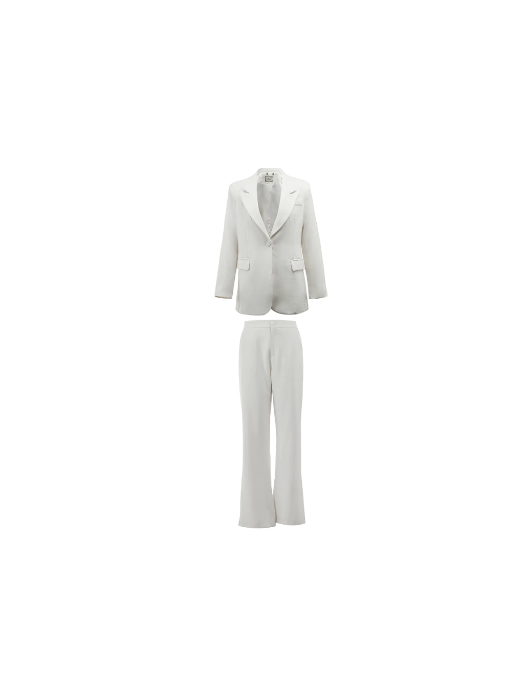 Dámský oblekový komplet pro ženy, které chtějí na schůzku, akci nebo do společnosti spojit eleganci s moderní linií, přičemž sako s klasickými klopami, kalhoty s vysokým pasem a široké nohavice vytvářejí prodloužený, strukturovaný efekt.
