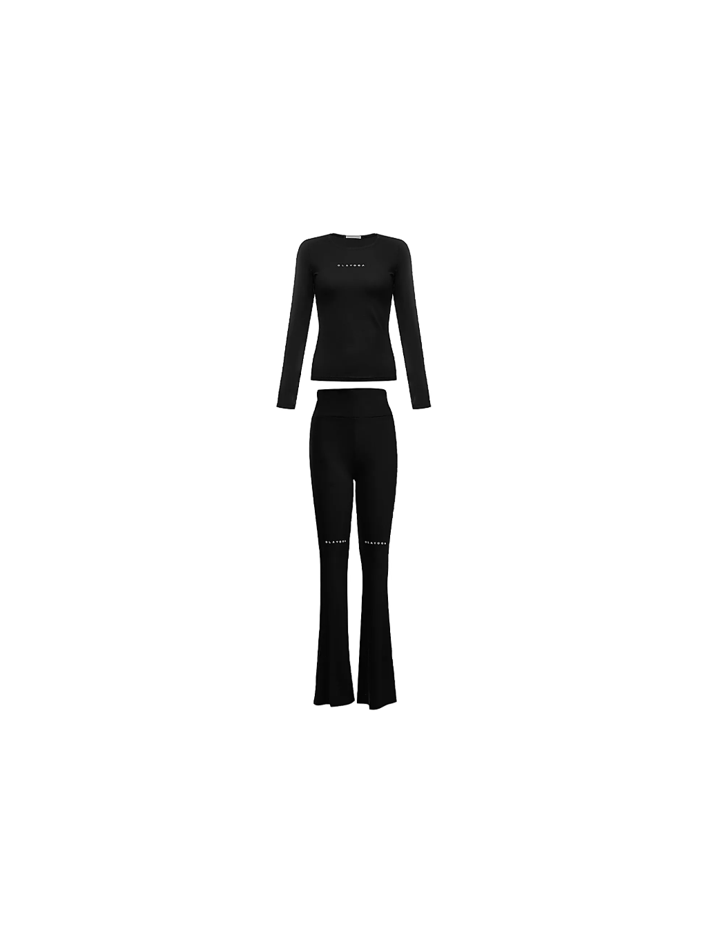 Halenka s dlouhými rukávy poskytuje pohodlí a volnost pohybu, zatímco kalhoty s vysokým pasem a mírně rozšířenými nohavicemi dodávají moderní nádech a jemně tvarují siluetu. Jemné logo značky podtrhuje minimalistický, luxusní styl soupravy.
