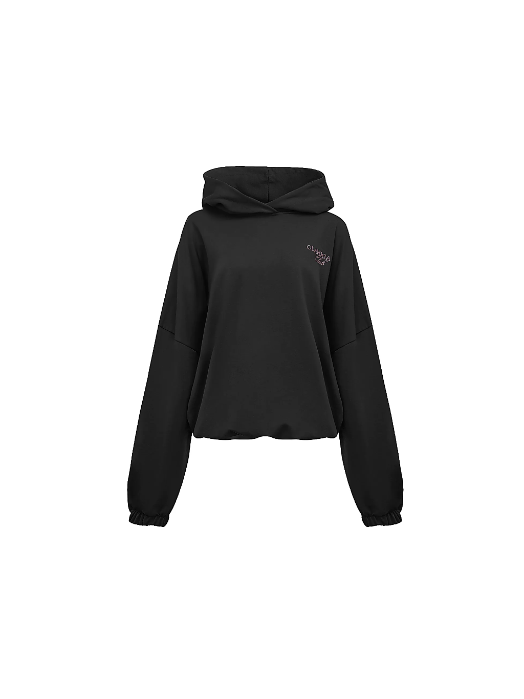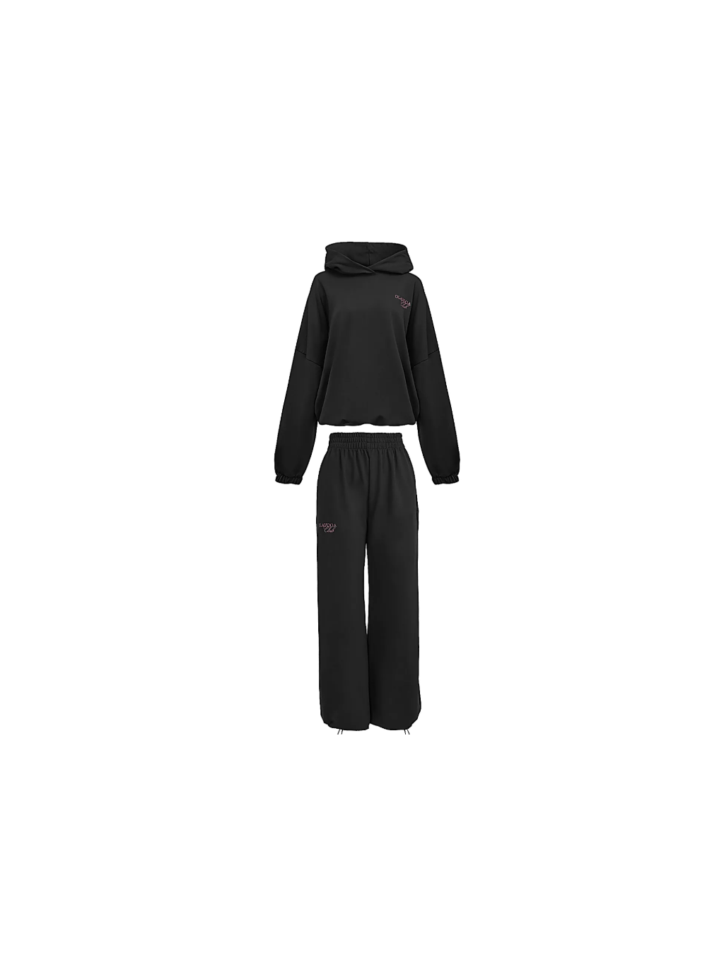 Mikina s kapucí je opatřena decentními logy, poutavými výšivkami a potisky s rty a nápisem "OLAVOGA Club", které zajišťují osobitý vzhled. Kalhoty mají elastický pas a decentní logo značky, které podtrhuje jednotnost stylu.