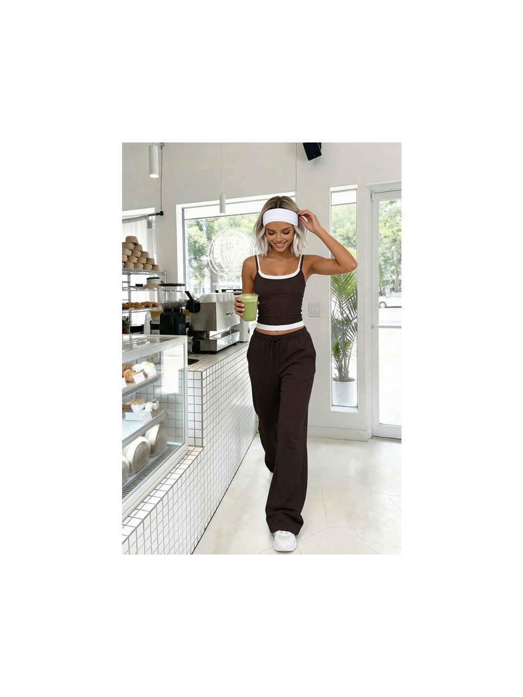 Dámská souprava topu a kalhot Dream v čokoládové barvě