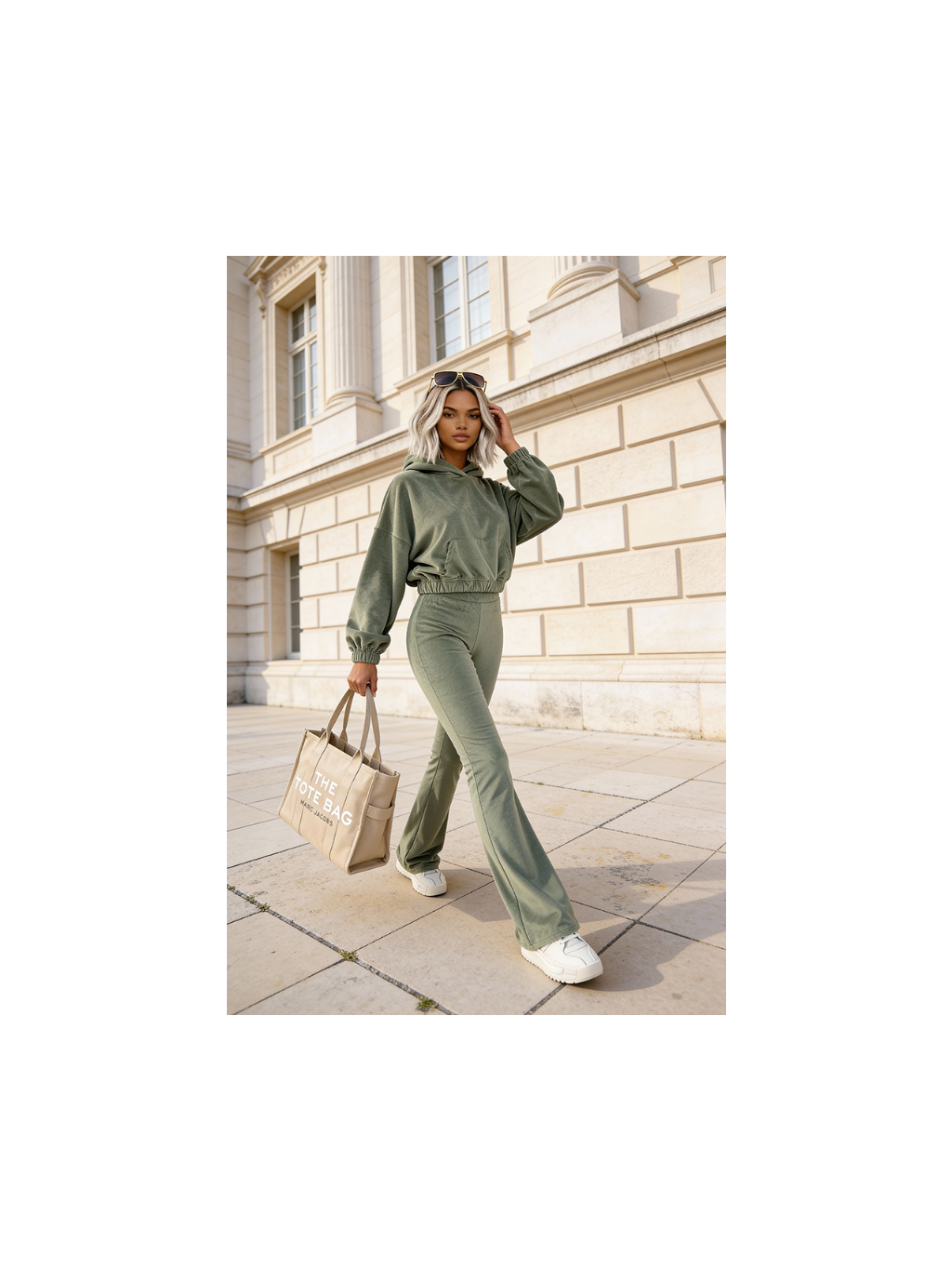 Objevte sadu, která kombinuje každodenní pohodlí s módním designem. Měkká mikina s kapucí a zvonové kalhoty vyrobené z vysoce kvalitního veluru jsou dokonalou kombinací pohodlí a ženského střihu. Jemný lesk materiálu dodává luxusní nádech, zatímco pružná tkanina zaručuje volnost pohybu po celý den.
