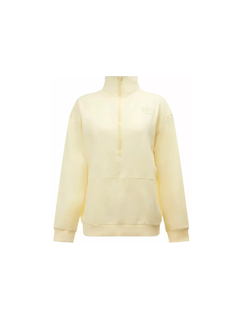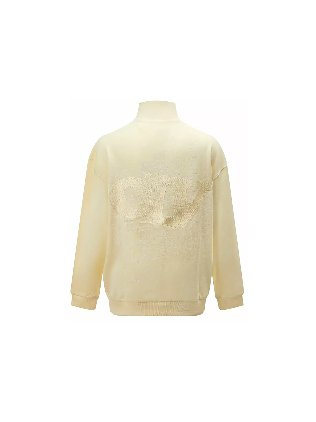 Vrchní díl je mikina oversize střihu se zvýšeným límcem se zapínáním na zip. Má dlouhé rukávy s elastickými manžetami a široký pas ve spodní části pro moderní proporce. Na přední straně je decentní výšivka s logem značky OLV. Zadní stranu mikiny zdobí výrazná prostorová aplikace nápisu "OLV" v jemné 3D výšivce, která je umístěna na pozadí jemného tónovaného potisku OLAVOGA, který dodává designu výrazný designový charakter. Spodní část soupravy tvoří volné kalhoty s elastickým pasem pro pohodlné nošení. Rovné nohavice se stahovacím lemem podtrhují sportovně ležérní styl. Na nohavicích je umístěna decentní výšivka OLV, která je v souladu s detaily na svršku.