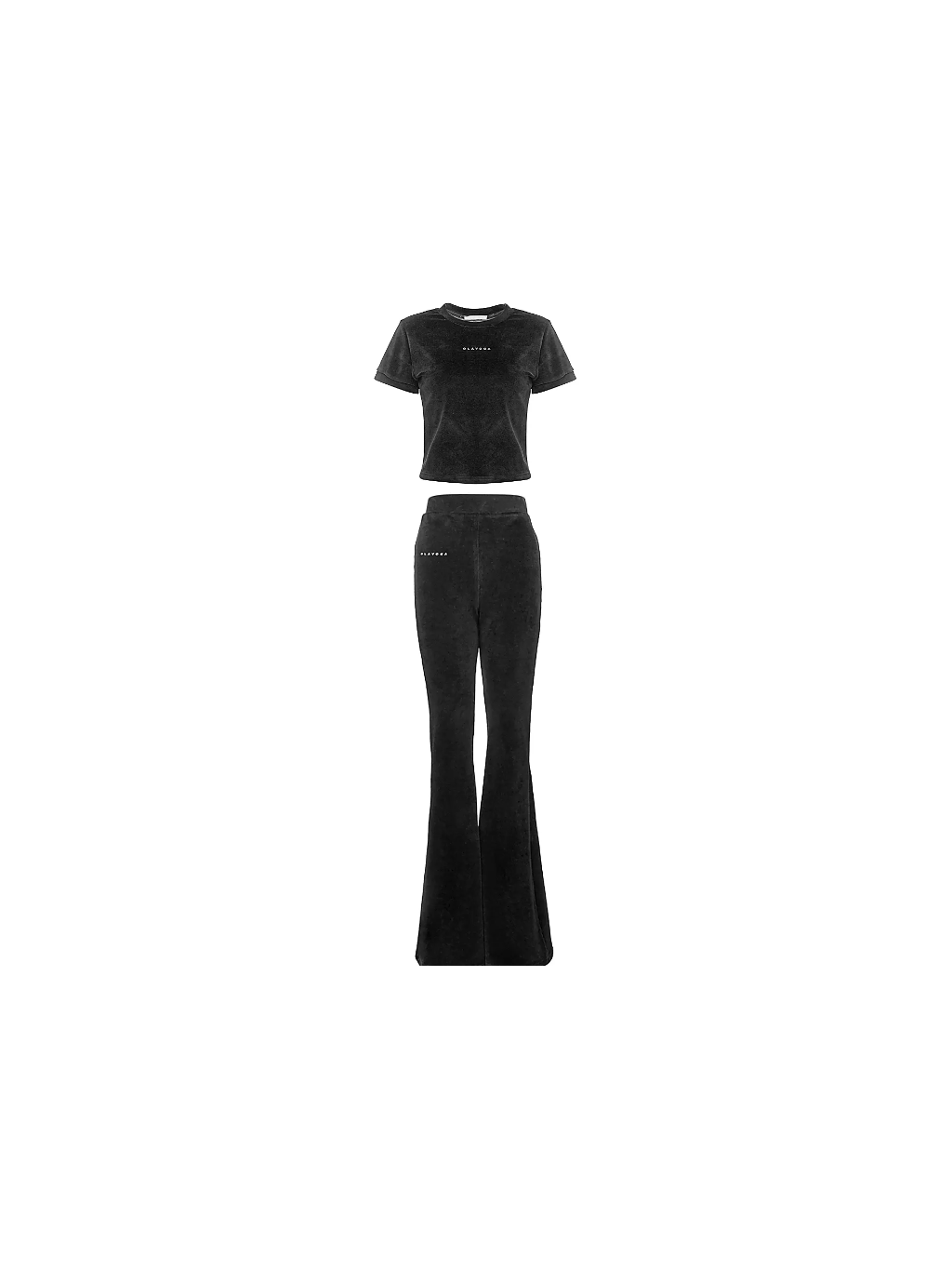 Horní díl je vypasované tričko klasického střihu s krátkými rukávy a kulatým výstřihem. Na přední straně je jemné, minimalistické logo značky OLAVOGA. Spodní díl tvoří kalhoty s vysokým pasem, vypasovaným horním dílem a mírně rozšířenými nohavicemi. Na nohavicích je umístěno decentní logo značky, které dotváří celistvý a elegantní vzhled.