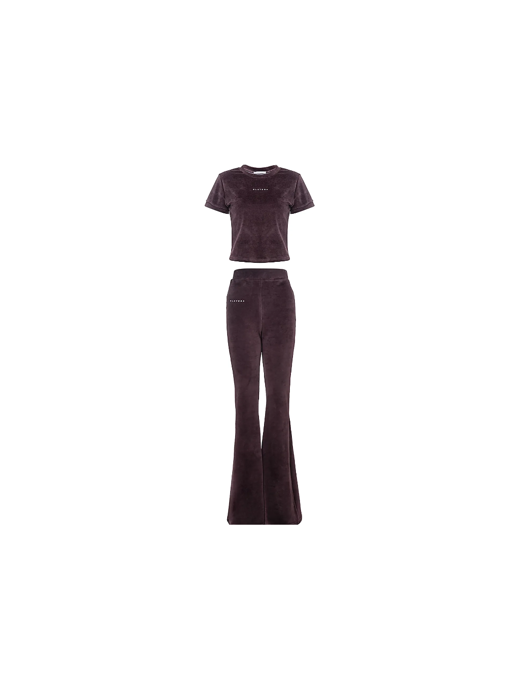 Horní díl je vypasované tričko klasického střihu s krátkými rukávy a kulatým výstřihem. Na přední straně je jemné, minimalistické logo značky OLAVOGA. Spodní díl tvoří kalhoty s vysokým pasem, vypasovaným horním dílem a mírně rozšířenými nohavicemi. Na nohavicích je umístěno decentní logo značky, které dotváří celistvý a elegantní vzhled.