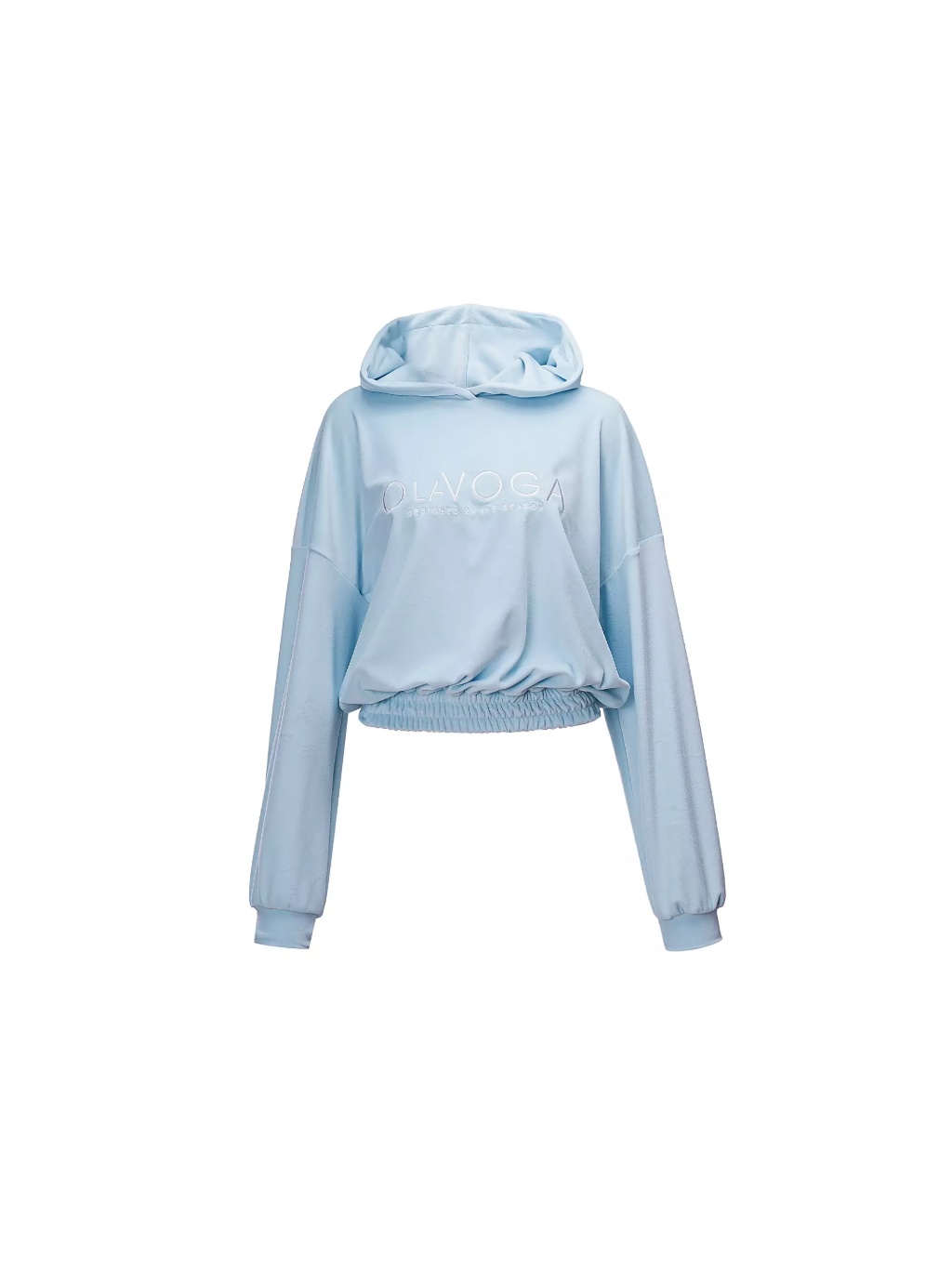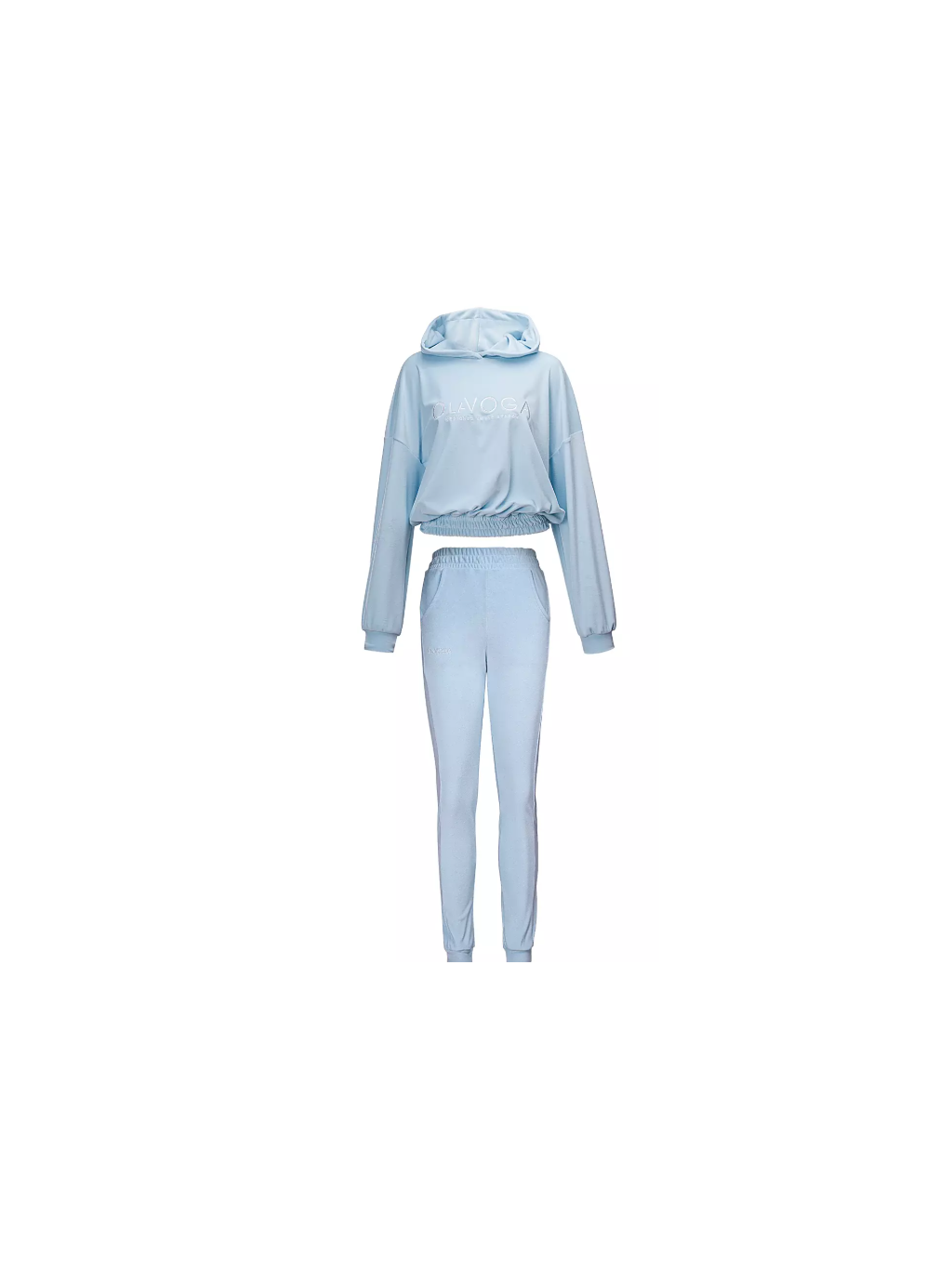 Vrchní díl je volná mikina s mírně sníženou linií ramen a elastickými lemy na spodním lemu a manžetách. Na přední straně je minimalistická výšivka s logem značky OLAVOGA. Spodní díl tvoří na míru šité kalhoty s elastickým pasem a praktickými kapsami. Nohavice mají žebrované lemy, které jemně zvýrazňují siluetu. Vzhled dotváří decentní výšivka s logem značky OLAVOGA na nohavici.