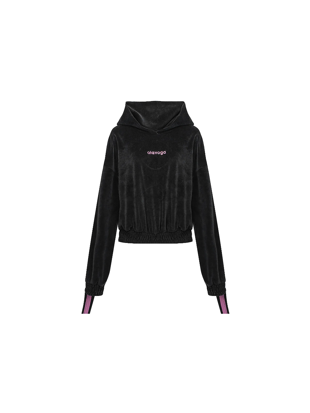 OLAVOGA krátká velurová mikina s kapucí a vyšívanými detaily