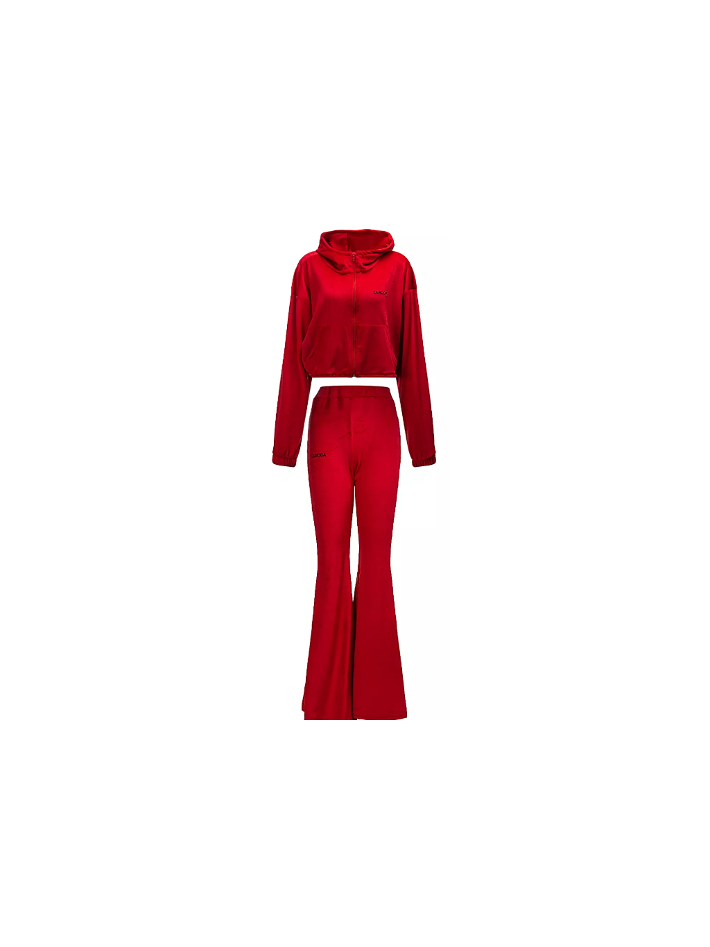 Dámská volnočasová velurová souprava OLAVOGA VELVET WOOD - červená