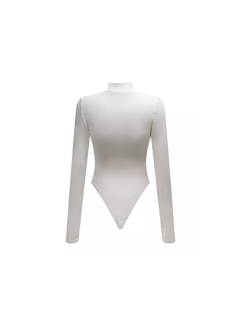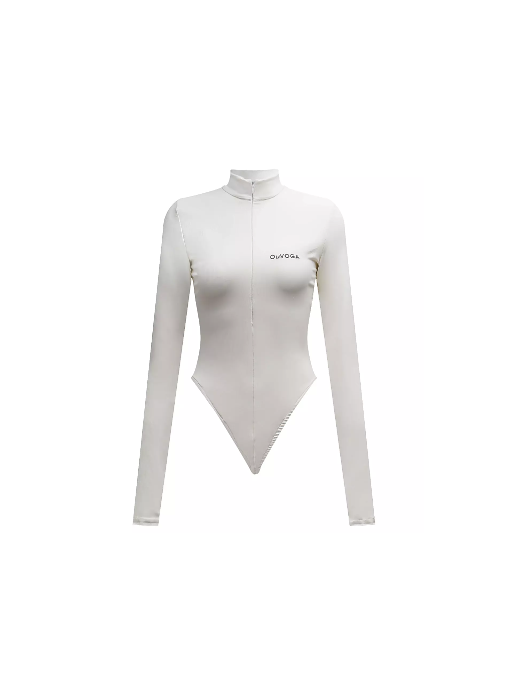 Perfektně padnoucí body s dlouhými rukávy a elegantním stojáčkem, vyrobené z vysoce kvalitní elastické tkaniny s žebrovanou strukturou. Model má nastavitelný výstřih na zip pro jemné přizpůsobení stylu. Rukávy zakončené praktickým výřezem na palec dodávají moderní vzhled a zajišťují pohodlné nošení. Na přední straně je minimalistická výšivka s logem OLAVOGA.