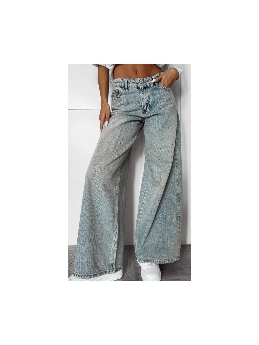 Jsou vyrobeny ze 100% bavlny a nabízejí odolnost, pohodlí a přirozenou prodyšnost. Klasický střih doplňují praktické kapsy, poutka na pásek a zapínání na knoflík a zip s logem pro pohodlné nošení. Jemné krystalky rozmístěné na látce dodávají kalhotám jemný třpyt a podtrhují jejich jedinečný charakter.