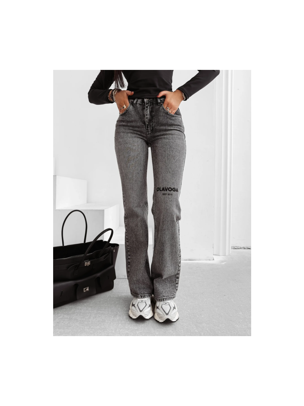Dámské džínové kalhoty s vysokým pasem OLAVOGA ZOIO - šedé