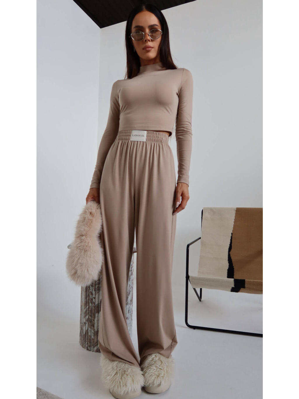 Volné modální kalhoty BALANCE LAMANUEL s vysokým elastickým pasem, širokým elastickým pasem a štítkem s logem.