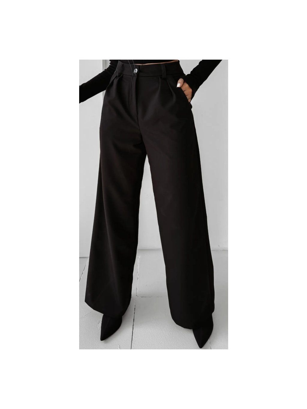 Tyto široké kalhoty jsou kombinací pohodlí a elegance a hodí se ke každodennímu i formálnějšímu oblečení. Vysoký pas krásně zvýrazňuje pas a díky měkké, splývavé tkanině nohy volně a lehce splývají, což siluetě dodává štíhlost a lehkost pohybu.