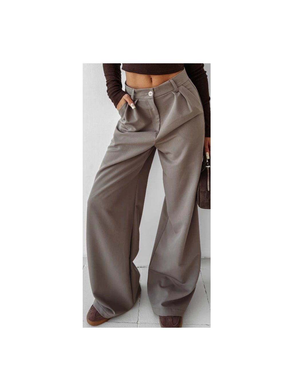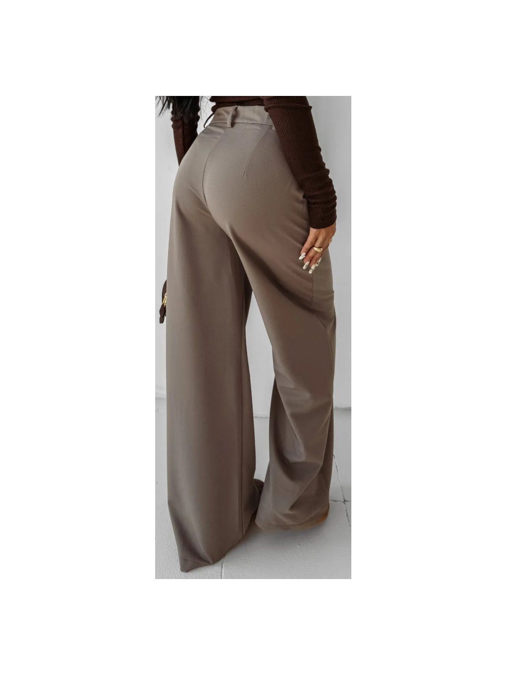 Tyto široké kalhoty jsou kombinací pohodlí a elegance a hodí se ke každodennímu i formálnějšímu oblečení. Vysoký pas krásně zvýrazňuje pas a díky měkké, splývavé tkanině nohy volně a lehce splývají, což siluetě dodává štíhlost a lehkost pohybu.