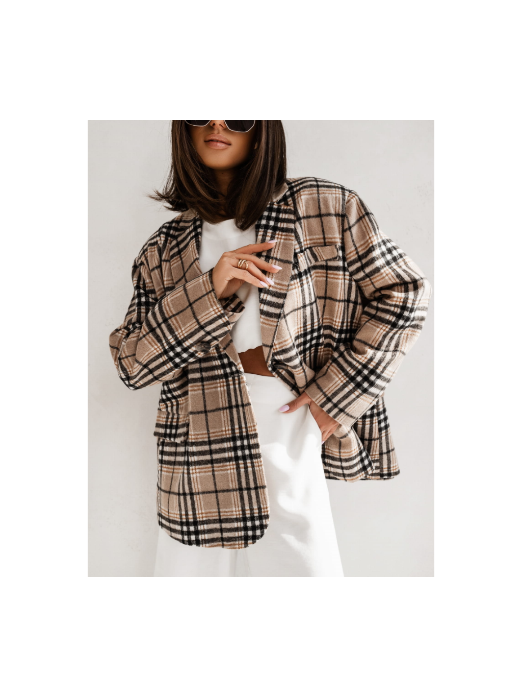 Zdůrazněte svůj styl s  tímto módním dámským kostkovaným sakem , které kombinuje klasický styl s moderním designem. Jeho  volný, oversized střih  zajišťuje pohodlí a volnost pohybu a zároveň dodává nádech elegance.  Toto béžové kostkované sako  je vyrobeno z měkké, příjemné látky, která krásně splývá. Má klasické klopy, dvě praktické kapsy a mírně delší střih, který se dobře hodí k džínům, elegantním kalhotám nebo šatům. Je to perfektní volba pro každodenní nošení, práci nebo zvláštní příležitosti. Přidejte do svého šatníku nadčasový kousek, který nikdy nevyjde z módy!
