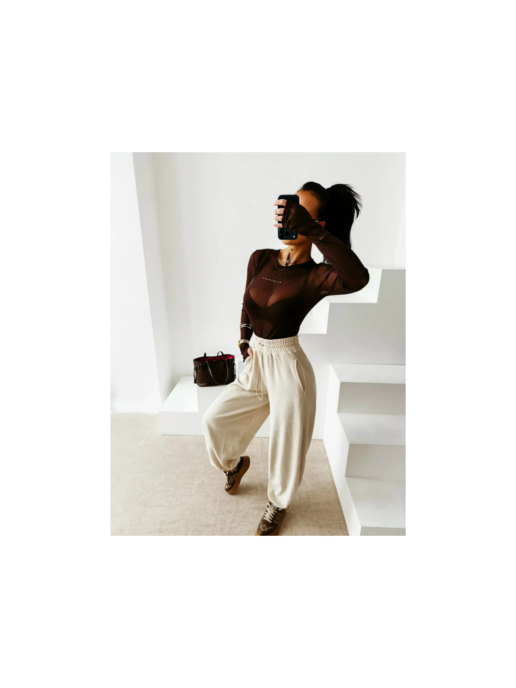 Dámské poloprůhledné body OLAVOGA AMELI - Hnědé