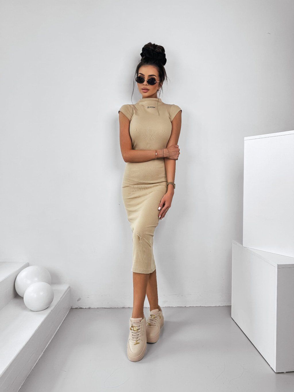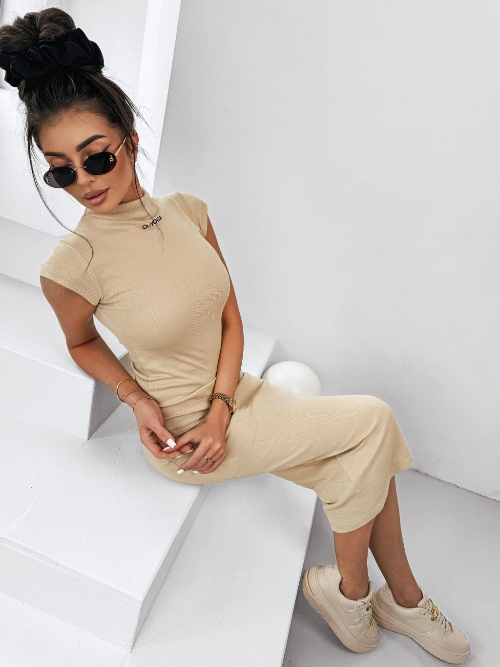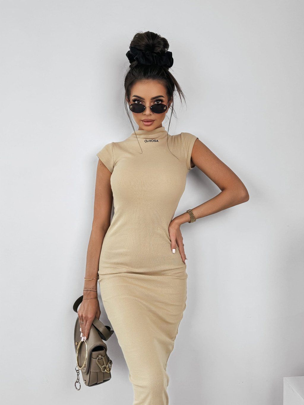 Dokonale padnoucí dámské maxi šaty s krátkým rukávem. Jsou vyrobeny z vysoce kvalitní strečové bavlny, mají vysoký výstřih a minimalistickou výšivku s logem OLAVOGA na přední straně.