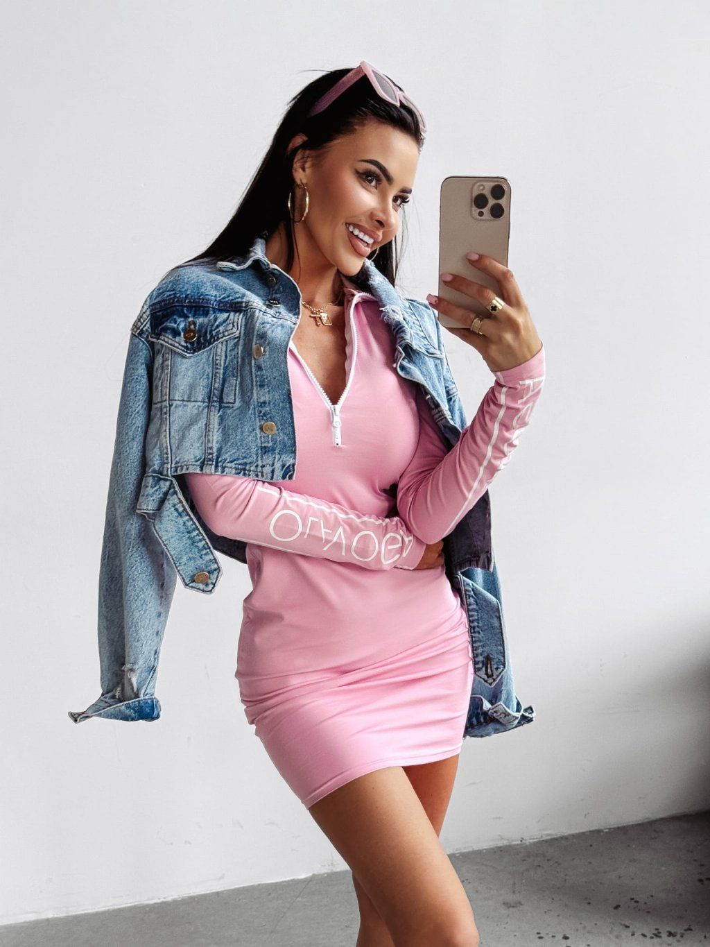Dokonale padnoucí šaty s dlouhým rukávem. Jsou vyrobeny z vysoce kvalitní látky s nádechem viskózy a mají nastavitelný výstřih pomocí kontrastního zipu. Rukávy zdobí velké logo OLAVOGA.