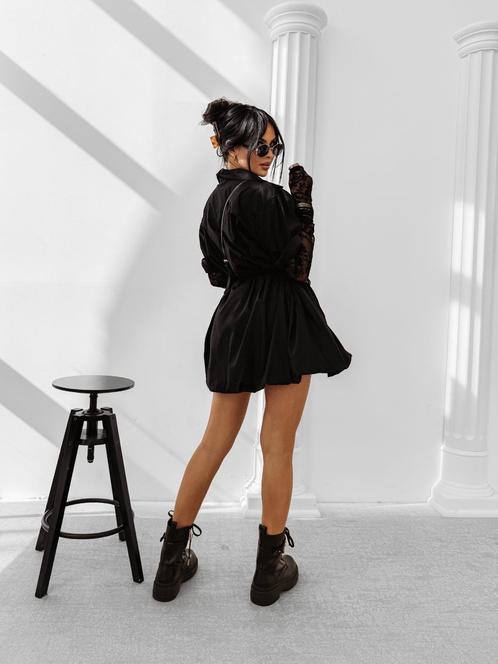Tyto elegantní dámské šaty košilového střihu jsou vyrobeny z vysoce kvalitní bavlny. Mají límeček a výstřih do V, zavazování v pase pro zdůraznění postavy a krátké rukávy. Krajkové rukávy všité zespodu dodávají šatům další šmrnc. Na přední straně je zdobena decentní nášivka s logem značky OLAVOGA.