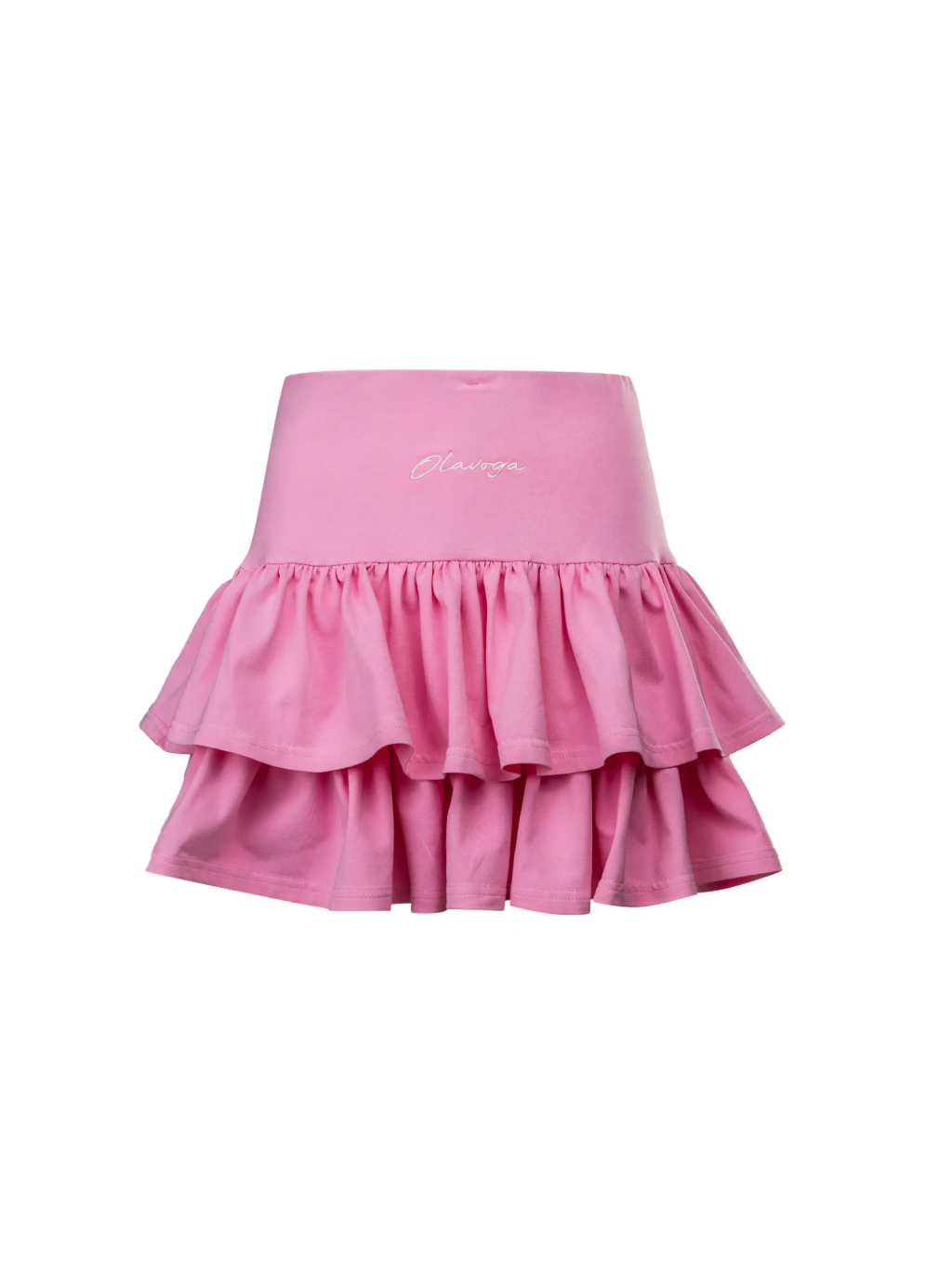 Na přední straně sukně-šortek je umístěna písemná výšivka s logem OLAVOGA v kontrastní barvě. Jedná se o jemný, ale výrazný akcent, který podtrhuje charakter značky výrobku.
