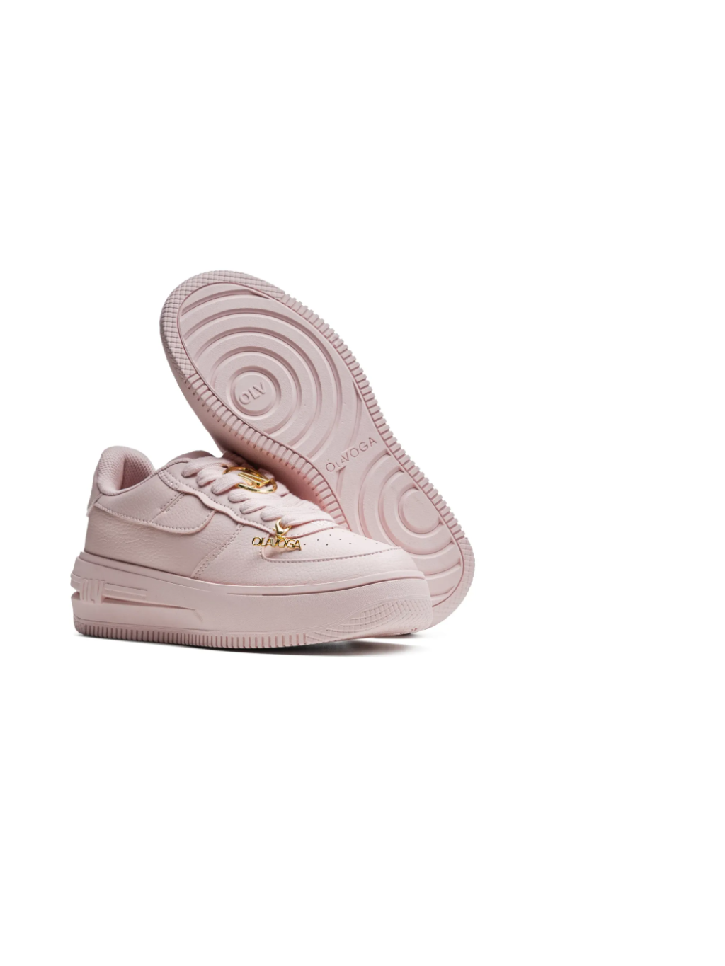 Stylová sportovní obuv na robustní platformě s luxusními zlatými akcenty. Jsou vyrobeny z vysoce kvalitního materiálu s lehce na dotek příjemnou strukturou a zaručují pohodlné nošení a nevšední design. Vyražené logo značky OLAVOGA na boku a na podrážce decentně zdůrazňuje exkluzivní charakter modelu. Elegantní zlaté detaily na tkaničkách dodávají botám výrazný a moderní vzhled a dokonale dotvářejí celkový dojem.