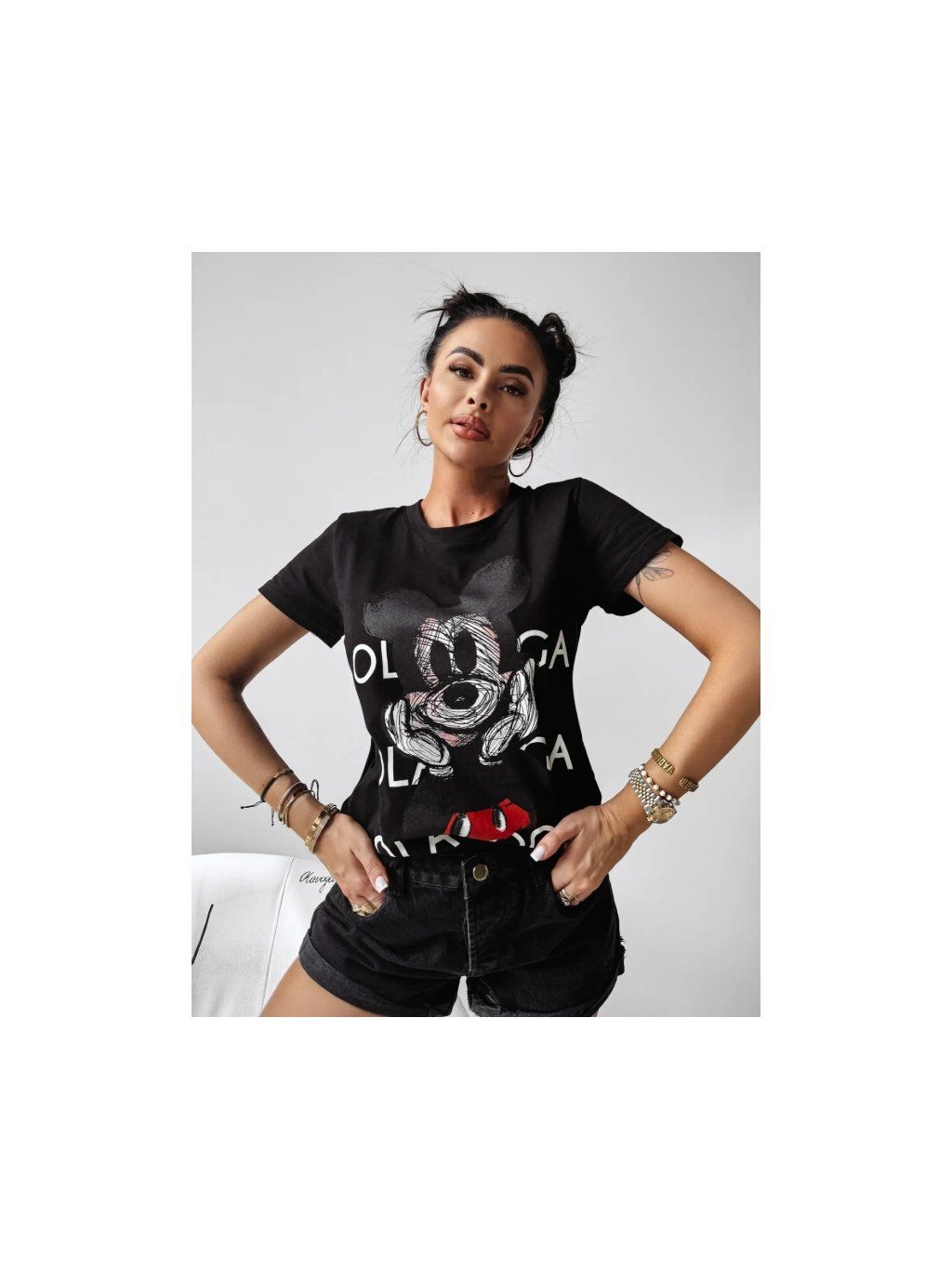 Přiléhavé tričko s krátkým rukávem z prvotřídní elastické bavlny. Na přední straně je velký potisk s Mickey Mousem a logem společnosti OLAVOGA.