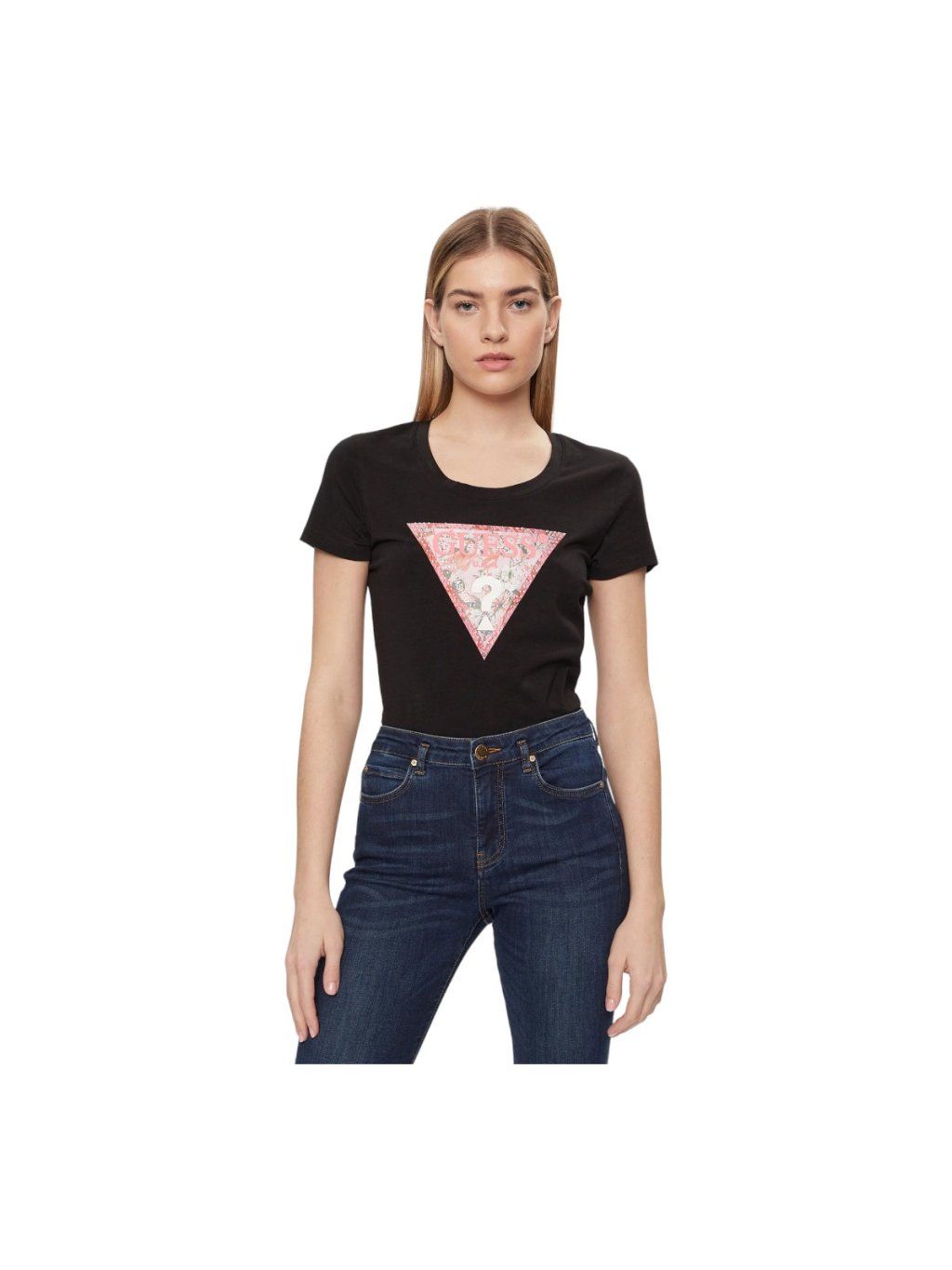 Dámské tričko GUESS v černé barvě s ikonickým trojúhelníkovým logem. Pohodlný kousek z organické bavlny s jemnými ozdobnými detaily pro každodenní nošení.