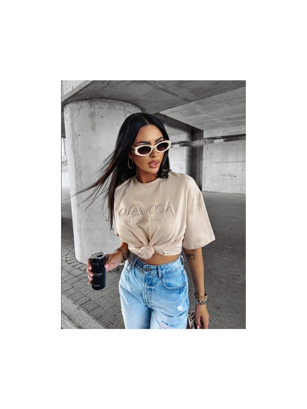 Jemně nadměrné tričko s krátkým rukávem ušité z elastické prvotřídní bavlny pro výjimečné pohodlí. Na jednom z rukávů je jemná výšivka s logem OLAVOGA. Přední stranu zdobí rozsáhlá, výrazná výšivka s logem značky, kterou doplňuje minimalistický, elegantní nápis "ALL ABOUT FASHION", dodávající tričku jedinečný a módní nádech.
