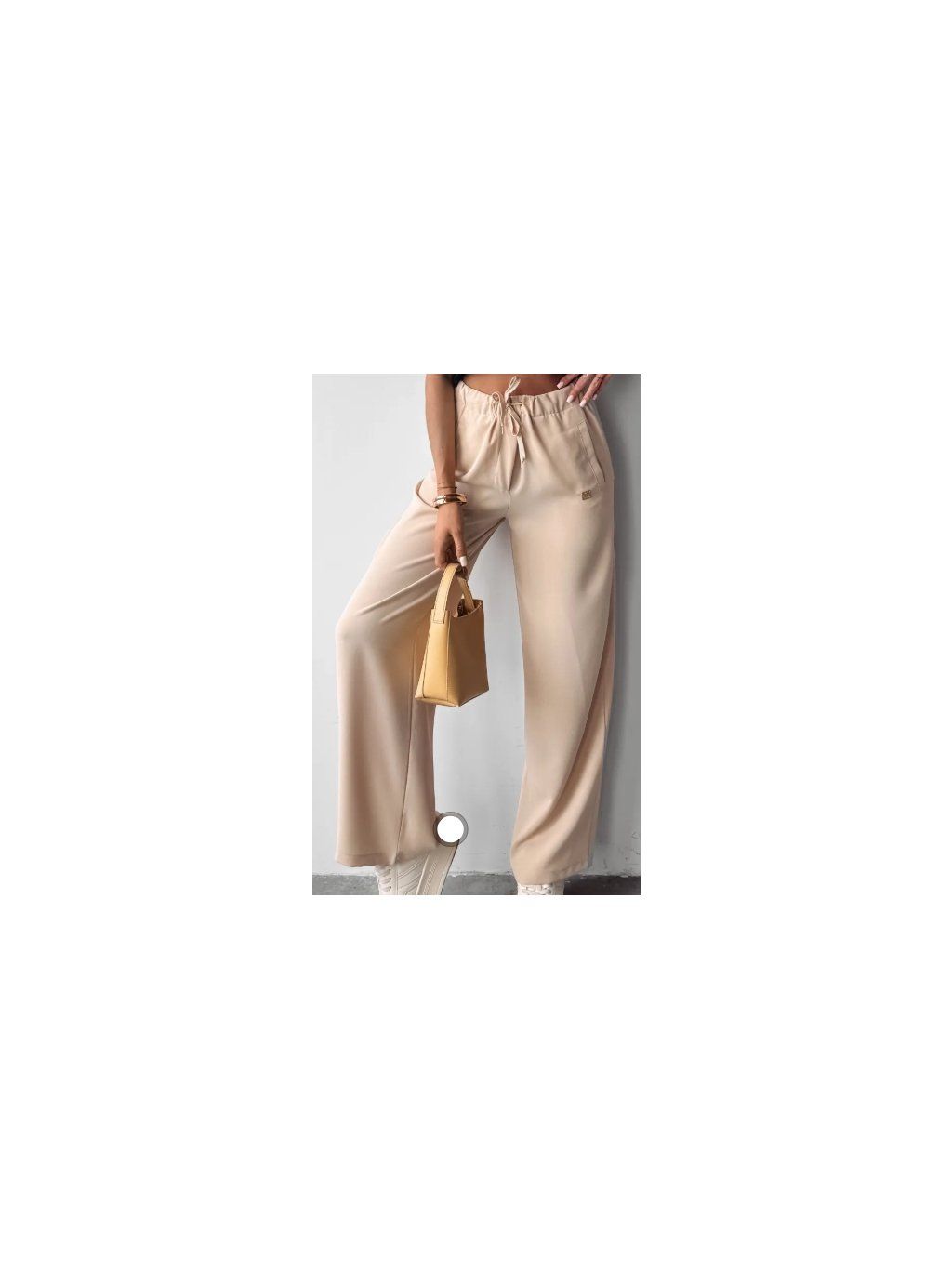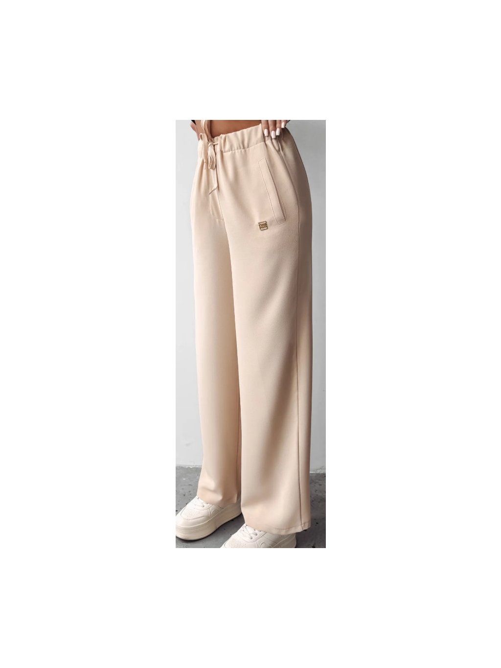 Tyto ležérní kalhoty s vysokým pasem jsou kombinací pohodlí a módního střihu, který dokonale odpovídá současným trendům.