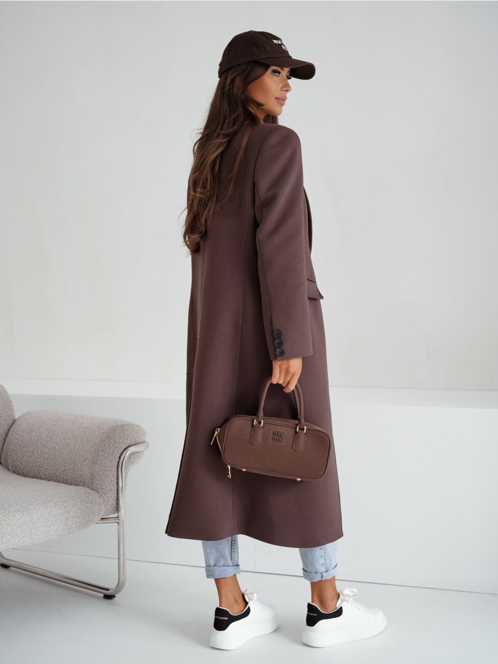 • Má nadčasový design s klasickým límcem. Je dlouhý a zeštíhlený a je vyroben z velmi módní a oblíbené teplákové látky, známé z předchozí kolekce bund této značky. Hodí se jak pro formální, tak i pro běžné nošení.
