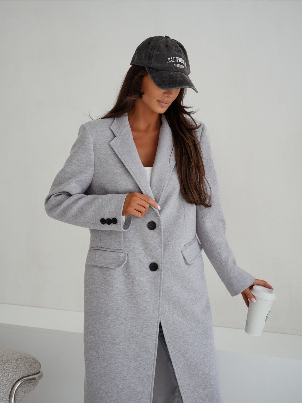 • Má nadčasový design s klasickým límcem. Je dlouhý a zeštíhlený a je vyroben z velmi módní a oblíbené teplákové látky, známé z předchozí kolekce bund této značky. Hodí se jak pro formální, tak i pro běžné nošení.
