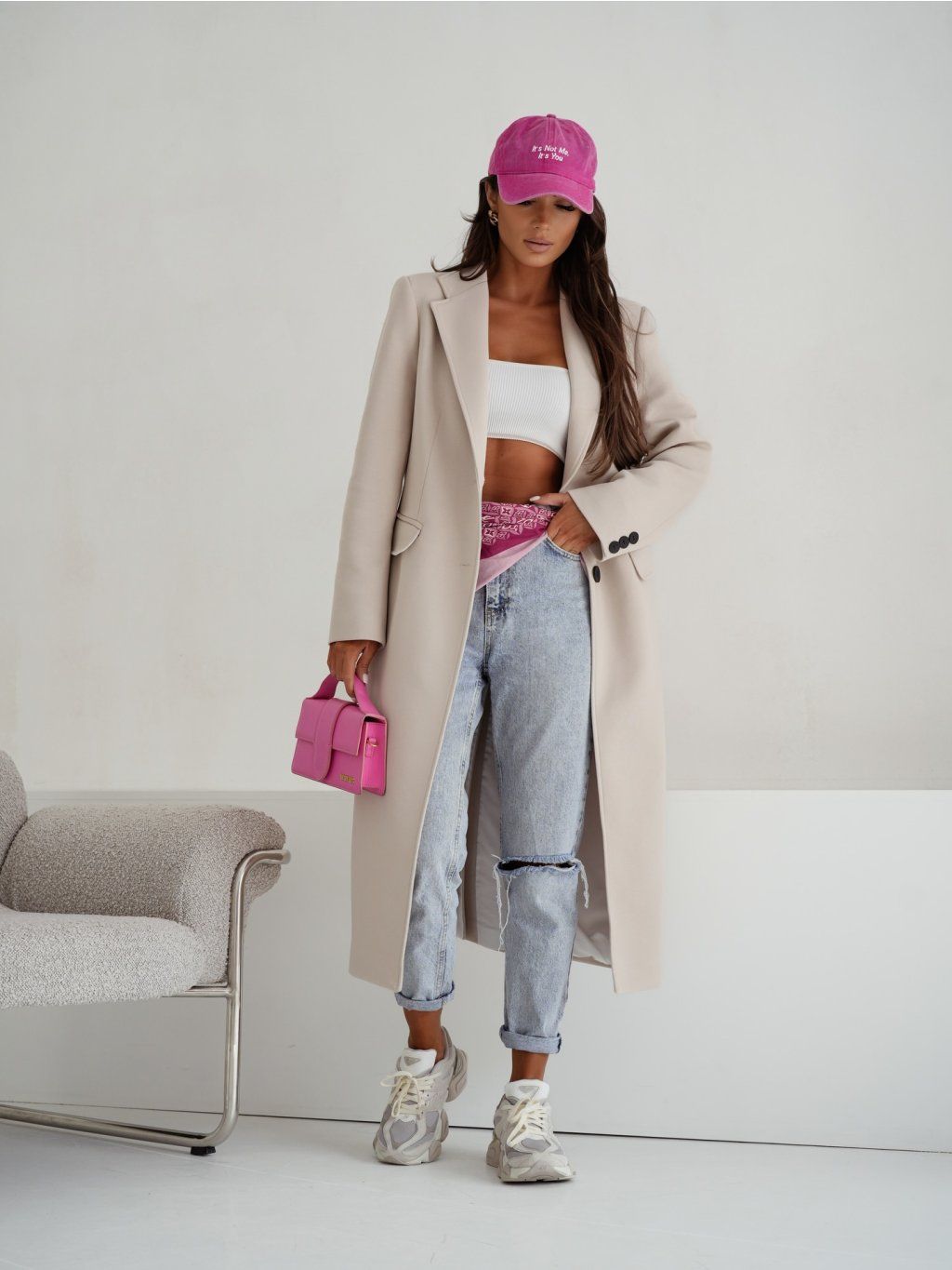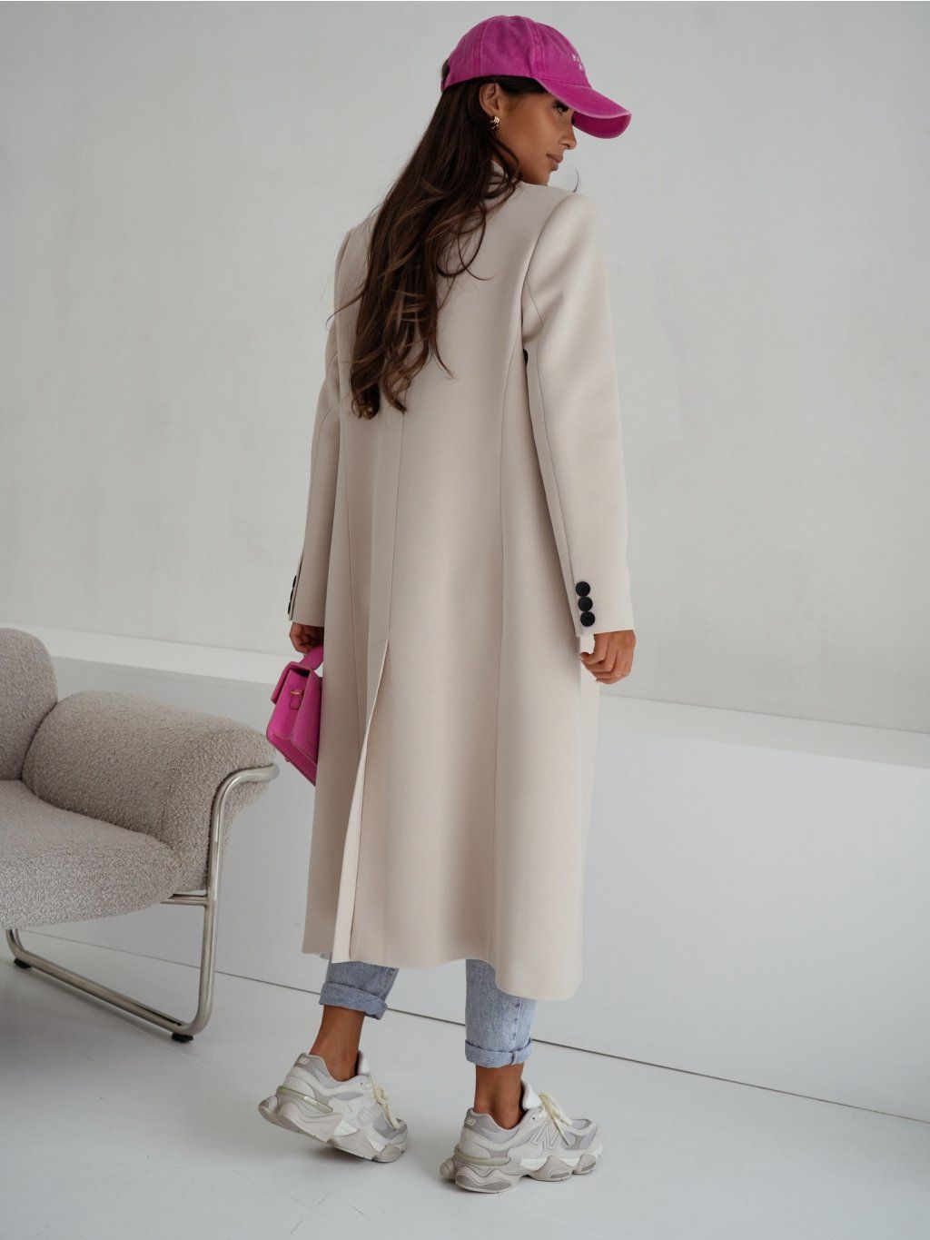 Má nadčasový design s klasickým límcem. Je dlouhý a zeštíhlený a je vyroben z velmi módní a oblíbené teplákové látky, známé z předchozí kolekce bund této značky. Hodí se jak pro formální, tak i pro běžné nošení.