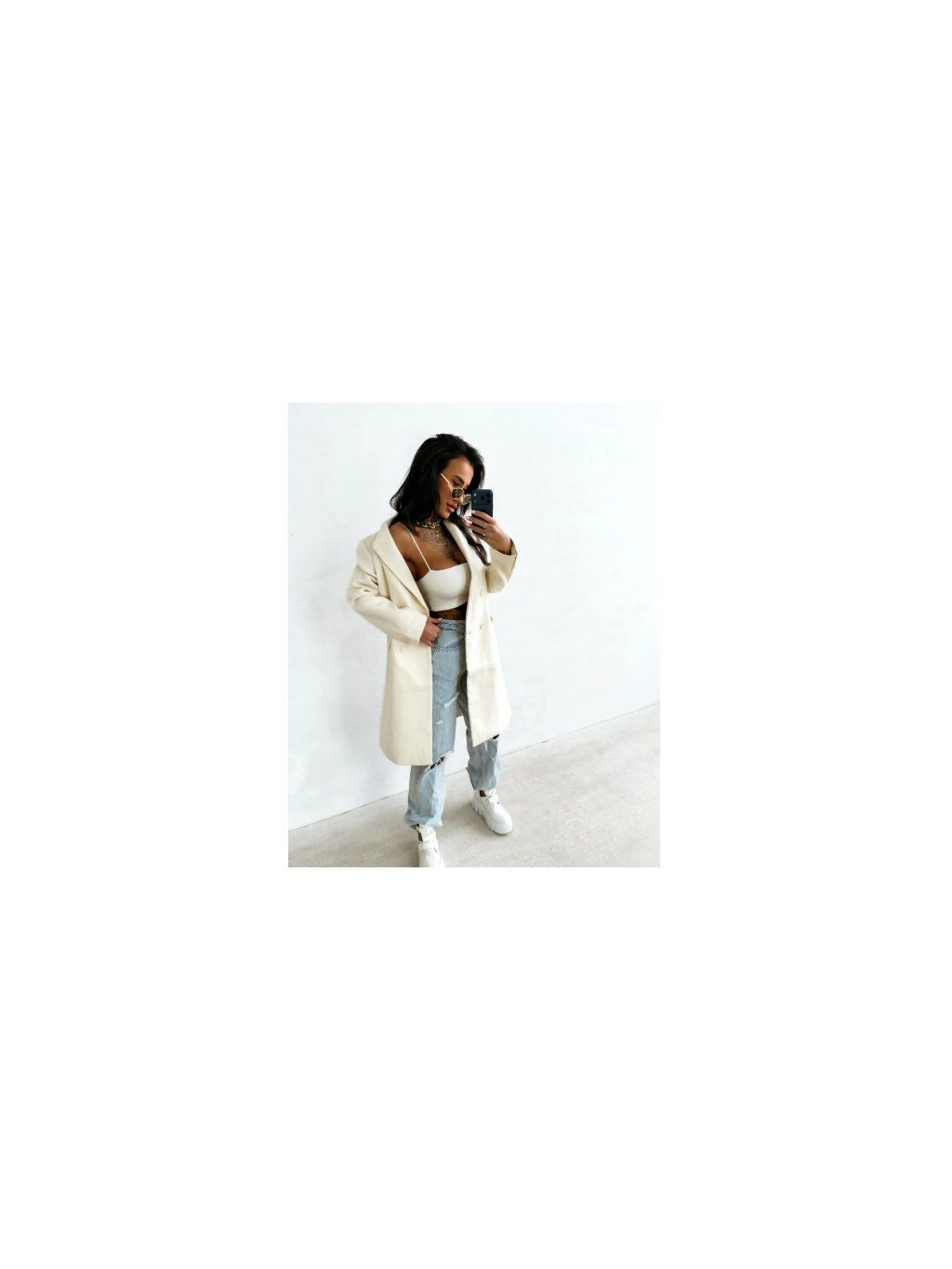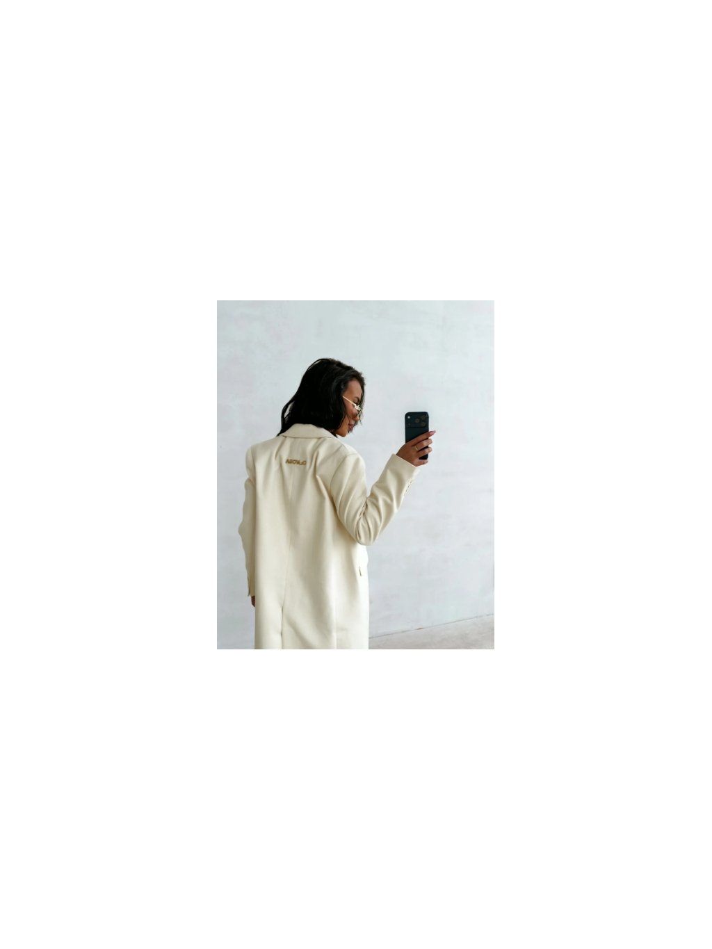 Dámský kabát klasického rovného střihu. Vyroben z vysoce kvalitní měkké tkaniny s hladkou strukturou. Model na knoflíky s elegantním límcem a dlouhými rukávy. Jemné zlaté logo značky OLAVOGA na zadní straně. Kapsy na bocích.