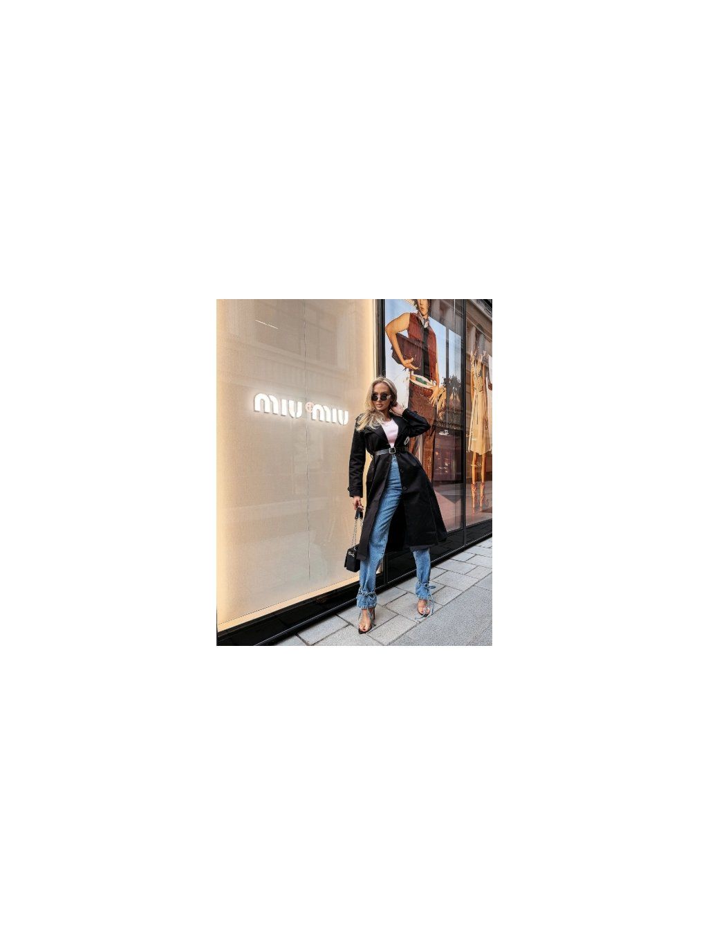 Pásek v pase pomáhá definovat proporce a organizuje linie kabátu. Klopy a midi délka kabátu dokonale